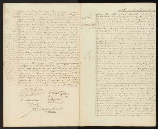 7.83. tevens onder afstand van het regt van na vor dering of andere regten, aanspraken, uitvla„ 66. 60 ten of exceptien, zoo in als buiten regten, wel de hen zoude kunnen te stade komen of daar 4. 4 tegen strijden. Belovende partijen overigen over en weder vrijwaring als overeenkomste de wet, onder verband tevens van elkander 2. 40 ter zake der in deze vervatte Nalatenschap nimmer om eenige herrekening of herschei ding te zullen aanspreken of lastig vallen 2 hetzij in of buiten regten, maar de een den an „ 6, dere, met volledige kwijting en decharge, zon 84 der deminste voorbehouding toe ook genaamd de volle kracht en werking dezer ten allen 't 20 de te zullen doen hebben en genieten; ter wijl, ingeval van uitgifte van afschrift of do uittreksel van deze scheiding wel uitdruk no kelijk wordt vastgesteld en bepaald, zulks H. niet anders zal kunnen gevordert of gedaan acht worden, dan ten korte van dengene, als door wien zulks zal worden gerequireerd. drie wordende Jan Pannehoek, vermits deszelfs vat ongesteldheid, ten deze vertegenwoordigd door Jacob Pannekoek, reeds genoemd, en zulks blijkens — Acte van Lastgeving, op den vierden Jan var 't van dezes Jaars te Aalsmeer, onderhande geteekend en soude welke Acte, na voor of door den Lasthebber in n tegenwoordigheid van den notaris en der nat „schrij noemene getuigen voor echt erkend en ten Olij bedaarvan door hen allen onderteekend te zijn „ldar aan deze minuut is vastgehecht. zn — waarvan Acte: ter Gedaan en verleden op den Twaalfden Ianuari „ „ 2 achttienhonderd zeven en vijftig, aan het Lö gecomen kaal der teregtvittingen van den kanton Reg van ter, onder de Gemeente Nieuwer Amstel, in tegenwoordigheid van Jan Mastenbroek en st. Hermanus Vonk, de eerste Geregts dienaar de laatstgenoemde van beroep Tapper, en beiden onder de gemeente nieuwer Amstel wonende, als getuigen. En is door de Com paranten, den Heer kanton Regter ende getuigen, allen aan den notaris Lichten belt bekend, met hem, deze minuut, on middelijk na voorlezing, onderteekend J.F. Aberion K. V Zyverder V. A. A van Aer Paarse Rankonwyken. W=m Pannekoek I Pannekoek I. Mastenbroek K Pannekoek H Vonk J.H.L. Lichtenbelt. I=a Notaris Acte van Boedelscheiding Voor Jan Hendrik Lichtenbelt Junior Notaris in het Arrondissema Amsterdam Provincie Noord- Holland, te Aalsmeer residerende zijn, in tegenwoordigheid van den Edel Achtbaren Heer M=r Oswald Lo dewijk Gerhard Frederik Aberson, kanton Regter te Nieuwer Amstel, en onder die G meente wonende, verschenen: Eerstelijk: Iacob Gerritzoon Maarse, zoo voor zichzelf als ook in hoedanigheid van a. als Erfgenaam voor het beschikbaar gedeel te der nalatenschap van wijlen natenoem ne zijne overledene Echtgenoote. En 6. als vader en wettige voogd over het eenige na gelatene en uit dat Huwelijk gesprotene kind, genaamd Gerrit. den tweede: Arie Buis, als in Huwelijk heb bende Matje Maarse, zonder beroep, met wien hij volgens het nederlandsch Burger lijk wetboek in algeheele Gemeenschap van Goederen is gehuwd en mitsdien uit krach te daarvan, hare regten en belangen waarne mende. — Ten derde: Gerrit Gerritszoon Maarse, zoo uiteigen hoofde als ook nog in qualiteit van Toezienden voogd over den zooeven ge noemden in derjarigen Gerrit Maarse tot welke betrekking hij is benoemd na ver hoor der Bloedverwanten en aangehuwden en met hunne overeenstemming als vol gens de wet, door den genoemden te nieu wer Amstel gesetelden Heer kanton Re ter, geadsisteerd met deszelfs Griffier, blij kens daarvan opgemaakt en geregistreerd proces-verbaal van den vijftienden Sep tember achttienhonderd vier en vijftig en mitsdien hij Comparant als in die zijn hoedanigheid ten deze de belangen van dien minderjarige waarnemende, voorzoo veel dezelve mogten geacht worden met die van den vader en voogd in tweertrijg te zijn. en ten vierde: Jan Gerritszoon Maarse mede voor zich zelf. (: zijnde alle de Comparanten van beroep Boomkweeker en te Aalsmeer woonachtig welke Comparanten verklaarden te wil len overgaan tot scheiding en verdeeling van den nog onverdeelden Boedel en na latenschappen van hunne ouders wijlen Gerrit Willems Maarse, in leven van beroep Bouwman en Guurtje van der zwaar zonder beroep, Echtelieden, tezamen gewoond hebben de te Aalsmeer en aldaar overle den, eerstgemelde op den Twintigsten Sep tember achttienhonderd twee en veertig en laatst genoemde op den twaalfden de tober achttienhonderd zes en vijftig; zyn de zij onder de oude Hollandsche witten in algeheele Gemeenschap van Goederen gehuwd geweest en in welke Gemeenschap N=o 603/3 12 Junij 1857. Geëxped: & Geëxtras „ 666. 60 ƒ 1000 ƒ 894.4 2.40 12.2. 4.61 ƒ 16. 84 Geregistreerd dam do den Januari 1800 Zeven en Vyfti Honderd acht Honderd drie „ recto vak Vier bladen voorjent van regt van soude o/o Negen lden, van schee Twee Gulden centen en tificatie canten, te et 38 opcen elden acht. 666 b. ƒ 1000 / 894. 4 2 i/16 12.2. 4.61 ƒ 16. 84