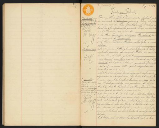 North Holland Archives, archive number 3394, Notariële protocollen en akten van notarissen te Velsen (Notarieel Archief Velsen), inventory number 377, Minuten van notaris Gerrit Daniel Boerlage, 1916-1925, 1919 nummers 501-550