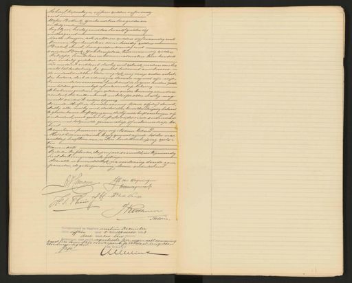 Schors, koperslager, vijftien gulden vyfen veertig eerst. Wefers Bettink, yzerhandelaar twee gulden vier en dertig cent. Engelgeer, hoe losemaker twaalf gulden vijf en diligent Dootts Nuyen, onts, achttien gulden vyf enzeventig cent Vermeer, Wynhandelaar zes en twintig gulden Brakel, Smid, twee gulden zeventig cent van den Broek, IJzerhandelaar, twee enzeventig gulden Filippo, kandelaar in bouw materialen twee hondert vier en dertig gulden. De rendant verklaart dat hij wil gebruik maken van het recht tot toedeeling, bij gemeld testament omschreven. de rendant verklaart dat er mogelijk nog eenige andere school- den bestaan, doch de rekeningen daarvan nog niet zijn inge- Komen en dat er voorzoover hem bekend is er geene andere goede ren tot deze gemeenschap of nals verschap behooren de beschreven goederen zijn gelden onder bewaring van den rendant, die zulks erkende en beloofde alles wat hy nog mocht vinden te zullen opgeven de rendantheeft in handen van mij Notaris afgelegd den eed dat hij alles wat hij weet, dat tot deze boedelbeschryving behoort te goedertrouw heeft opgegeven, dat hij niets heefs verzweyen of verduisterd, noch gezien heeft of weet, dat er iets verdienstend is van wat tot gemelde gemeenschap of nalaemschap be- hooft. de verschenen personen zijn mij Notaris bekend. Met al het voorstaande bezig geweest zijnde tot des na middags half twee uw, is deze boedelbeschrijving geslo„ ten Waarvan akte Verleden ter plaatse, dage en jare voormeld, in tegenwoordig heid den bovengenoemde getuigen dezeakte is onmiddellyk na voorlezing door de com„ paranten, de getuigen en my Notaris onderteekend Ist van Wageningen As. Camann H van wageninge Jr. P Eede Kies b.l. H. I. Thim J. Koolhoven Notaris. Geregistreerd te Haarlem veertien December 1900 vijftien deel 5 folio 124 verso vak 3 drie blad en één renvooi Ontvangen voor recht wegens beschr. ƒ2,40, weegens verkl aanneming „ legaat ƒ1.20. Samen f 3.60 voor 10 opcenten fo. 36 Fotaal drie gulden zesennegentig cent / De Ontvangen ƒ3.96 Meulius