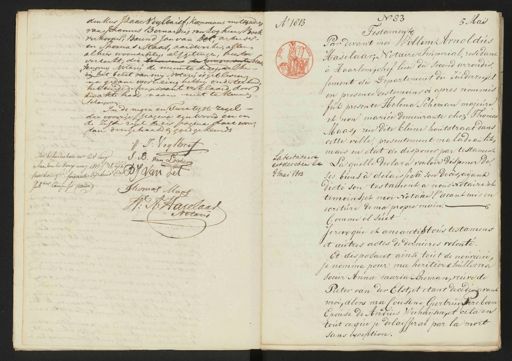 North Holland Archives, archive number 1617, Notariële protocollen en akten van notarissen te Haarlem (Oud Notarieel Archief Haarlem), inventory number 1696, Willem Arnoldus Haselaar, Minuten van allerlei notariële akten, 1 mei 1813-20 december 1813