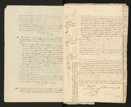 wE ƒ„ 4 Sr 17/8 en tachtig ellen. Waarvan Levi Ioseph Hangjas, eigenaar is geworden bij Onderhandsch transport gedaan en geteekend te Haarlem, den dertigsten April Achttien honderd veer„ „tig: geregistreerd te Haarlem den elfden Mei Acht„ „tienhonderd veertig, deel vier en dertig, folio honderd negentig, verso vak zeven.- Ontvangen teven guldens twintig Cents voorregt, met de 23% Opcenten. Acht Guldens zes en tachtig Cents.- Een blad, een Renvooij (geteekend:) D: F: Crommelin. Overgeschreven ten kan„ tore der Hijpotheken te Haarlem, den vijftienden Mei Achttien honderd Veertig, in deel zestien, Numero acht en twintig. En hetzelve toegewezen aan den Heer Corpeli Maas Molenaar wonende aan het Spaarne binnen deze stad voor ééne somma van twee honderd Vyf en dertig guldens die verklaarde het zelve voor dien prijs, en op de voorgeleze ne Conditiën te accepteren, domicilium heeft gekozen, alwaar deze veiling geschiedt, en na voorlezing heeft geteekend. En verklaarde de verkoop C Maas zullende Extracten van deze toewijzing aan de koopers worden uitgereikt= En verklaarde de verkooper in zijne gemelde qualiteit de bovengemel de perceelen aan de koopers definitivelyk toe te wijzen en bij deze over te dragen, voor bovengemelden prijzen, onder reserve dat door de koopers aan de Conditiën en Voorwaarden zal moeten worden voldaan. En heb ik van dit een en ander procesverbaal opgemaakt waar van de minute, behalve door de hier boven geteekend hebbende koo„ 5„ pers, door den Verkooper en den toezien den Voogd, in tegenwoor„ „digheid van de Heeren Jan Frredrich Vorst en Syte Jan Hoekstra Deurwag den aan de oude gracht beide wonende binnen deze stad, als getuigen met mij Notaris na voorlezing ten dage en plaatse voormeld, onmiddelijk is geteekend 1 LHang Tas JBrinkman J: F: Vorss P. Hoeken CGerlings J Notaris „cesidere„ onen trengen thware akenes onderd Compa „ eerder igkind „dige thecal groot. Predi„ dertoe Inge ntore 1678 ling nburg. ivier m: de Kreij 6. oege lve rog„ ned. rorten