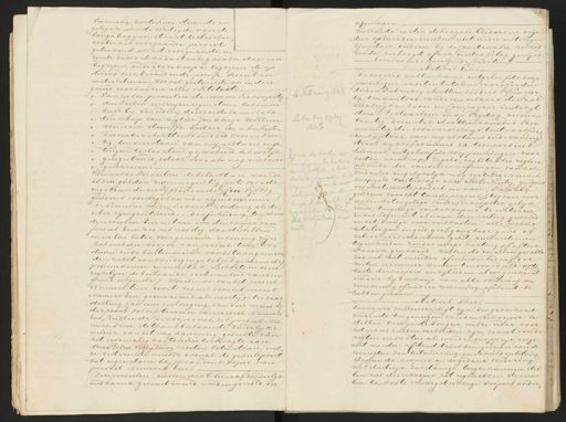 „ Voormalig koetshuis, staande en gelegen aan de Westzyde van de lange bagynenstraat te Haarlem achter het voorgaande perceel geteekend als het voorgaande en zynde onder de kadastrale grootte daarvan begrepen onder deze koop is begrepen de op ditert zich bevindende pomp, secreet en mets elsteenen, zoowel gestapelde als in den grond voorhouden alles voetstoots. van welke perceelen de vrouwe verkoopster „ den vollen envreyen eigendom bekomen heeft by scheiding der Boedels en Nala„ „ tenschap van wijlen Jonkheer Willem „ Hendrik Hoeufft op den Een en twintigsten „ December Achttienhonderd Vier en veer tig ten overstaan van my Notaris en ge „ tuigen te Haarlem gepasseerd behoorlyk „ geregistreerd edoch voor als nog niet over „ „geschreven. Van welke Perceelen de belastbare waarde is drie gulden zesennegentig Cents voor de ongebouwde en vyfhonderd vyf en Vyftig guldens voorde gebouwde eigendommen De Perceelen worden verkocht zoodanig als de zelve zijn gesitueerd. - De afscheiding tusschen de perceelen Een en twee doordenkooper van perceel Een zoo veel noodig daartestellen enwelke later voor gemeene rekening zijn zal met den kooper van perceel twee be„ staan inde bintenmuur van het aangrenzen de /in het aankondigings biljet genoemde provisiekamer inmettbak, en voorts in eene regtelijn de bestaande verhevenheid vanden grond volgende; wordende van het perceel Numero twee voorts zoo veel voor het perceel Numero Een gereserveerd als noodig is ter daar stelling van eene verlenging van den muur derpoort tot het terrein van perceel Numero Een, zullende dekooper van het perceel Nu mero Twee de thans bestaande zuidelyke muur van het nog aanwezig gedeelte van het voormalig koets huis ter hoogte van twee Ellen vyftig duimen moeten laten staan wel ke resterende muur evenals de geheelpoort het eigendom blyft vanden kooper, van perceel Numero Een. Deze perceelen zullen eerst ieder afzonderlijk en daarna gecombineerd word en geveild en 2 afgeslagen zullende echter de hoogste bieders en mijn ders op ieder der perceelen niet eerder ontslagen zijn, dan indien by de combinatie hetboe worde verhoogd ofwel inde afilag gemijnd. En zulks op de navolgende Conditien 1 Artikel Een. De koopers zullen hunne uitgeloofde koop penningen moeten betalen voór of op den derden February Achttienhonderd vyf enveer 4 February 1844 tig ten kantore vande Makelaars de Waal Malefyt en zoon en Compagnie in dezyl straat te Haarlem en op Vrydag zeven en Zaturdog 27 der twintig December Achttienhonderd Vier 1847 enveertig des voormiddags ten twaalfuren een kantore van my Notaris inde koning straat wyk Vyf Numero 24 tien percent hunner uitgelootde kooppenningen voor zynde de kosten der kosten vankoop, zegels, registratie regten Overschrijving ten kantore als mede die vanoverschryvingen van het der Hepotteken en het kadaster engelykelyk nog restitueren het Cadasten daar niet in der koopgeld ten bedrage van Achtenveertig guldens grepen als blijvende voor voor het eerste perceel en van Twaalf reke ning van de guldens voor het tweede perceel, tegaan voor „ een vierde ten gelage vande verkoopster, gelyk koopers die elyke vierde, tengelage vande koopers te verteren ver moeten Ventitue in het Logement alwaar deze veiling geschien dt tekgelden vo0 in het overige voor veilkosten, alle welke mel betalingen ingoed, grofgangbaar goud of zilver Nederlandsch geld, zullen dienen tegeschieden zonder eenige korting of aftrek hoe ook genaamd zullende in allen gevalle zoo wel het meerder of minderbedrag der kosten nimmer konen ten voordeele ofte laste derkoopers en zylieden alzoo gerekend worden by denkoop van alle vordering en verrekening of nadere rekening afstand te hebben gedaan Artikel Twee De koopers zullen verpligt zyn des gevorderd wordende tengenoegen vanden verkooper te stellen twee goede borgen, welke ieder voor het geheel zullen verbonden zyn, zoowel voórde regten en kosten als voor den koopprys, en ge acht worden afstand te hebben gedaan van de voorregten van Uitwinning en schuldsplitsing Indiende koopers op de gedane vordering niet dadelyk zoodanige borgen kunnen stel„ len zal deverkooper het regthebben deperceel len ten koste vande gebrekkige koopers ander„ 4 ta e 5 „2 ten