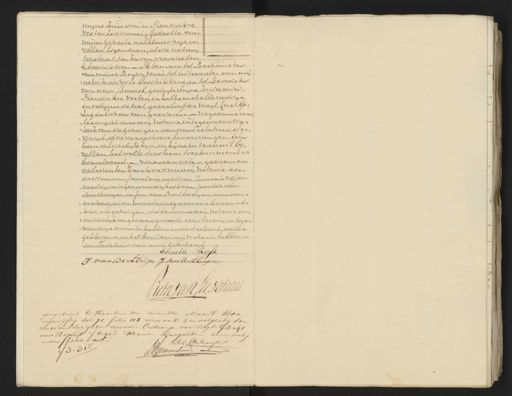 mine huisvrouw Hendrikie vester, zoodaning Gedeelte van mijne Geheele nalatenschap, in vollen Eigendom, als de wet mij toestaat, ten haren voordeelen te beschikken. – Ik benoem tot Bestuurster van mijne Begraffenis, tot uitvoerster van mij =ne uiterste wils beschikking, en tot Beredster van myn Boedel, gedagte mijne huisvrouw Hendriki Vester, en zulks met alle nodige en volgens de wet, geoorloofde magt, Last, Ge= =lag en beheer van goederen. — na gedane voor=lezing, is door mij notaris, integenwoordig= =heid van de getuigen aan den Testateur, of ge= =vraagd, of de voorschreve bewoordingen, voor hem duidelyk zijn, en zijne uiterste wil Oe= vatten, het welk door hem toestemmend is beantwoord. waarvan acte - gedaan en verleden ten kantore van mij notaris den Achttienden January achttien honderd vijfen veertig, in tegenwoordigheid van Jacobus van Boetbergen, en Jan van Boetbergen, manden= =makers, in de ursulasteeg wonende beiden al= =hier, als getuigen, die benevens mm notaris on= =middelyk na gedane geheele voorlezing de tegen= =woordige minute hebben onderteekend, welke gebleven is, in het bezit van mij notaris hebbende den Testateur deze mede Geteekend. Cornelis Bofs. J van Boetbezger J. van Boetbergen, Pieter van Lee Notaris. geregistreerd te Haarlem den zevenden Maart 1800 negenvijftig deel 70 folio 108 verso vak 3 en volgende hou dende een Blad zonder renvooi. Ontvangen voor Regt ƒ2=n40 voor 38 opcent ƒ0= 91½ tezamen drie gulden eenendertig en eene halve vient De Ontvange ƒ3:31½ DFCrommelin.