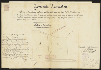 Jnn:r Perceel B huis, ecf min boomgaare Fectie A 9or, gos gedaltelijk, en 909, 910 geheel, groot rest der kadastrale