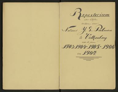 Historisch Centrum Limburg, archieftoegang 09.009, Notarissen in de Arrondissementen Maastricht en Roermond, 1896-1905, inventarisnummer 9274B, Valkenburg, Palmen, J.L, 1904-1905 + Repertorium hele periode