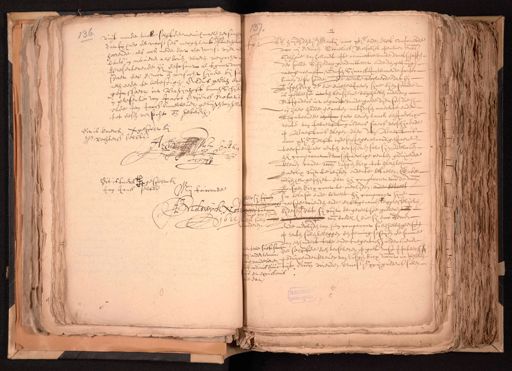 137 vuijt monde vande selffde menichmaelen verstaen 436 Op huijden den vjen. Martij anno xvjc. ende elff Compareerde dat sij haer de voorss. ses mergen lant waert voor mij Adriaen Cornelisz Molswijck openbaer Nots. hoorende, als oock mede dat de voorss. vijer bij den hove van hollandt opte nominatie vande Vroetschappen bants in manieren als boven waeren vercocht. der stede Schiedam geadmitteert ende den getuij¬ Presenterende hij deposant al tgunt voor naergenoempt, Goosen Sijmonsz Inwoonende poorter staet des noot en versocht sijnde bij sol¬ binnen deser stede, De welcke verclaerde dat hij nelen eede te bevestigen, Aldus gedaen en Rusgen Dirx dr. die enighe Jaeren sijne dienstboode gepasseert int Bagijnhoff binnen Schijer is geweest int ten aensiene van haere ouderdom in presentie van Jacob Ariensz Notaris Mitsgaders int regard vande goede dienste die hij ende Jan Jansz linnewever, getuijgen van het van haer hadde genooten, mitsdesen maeckte ende tot desen versocht ende gebeden legateerde een In haer leven lanck een Jaerlixe rente van twaelff guldens sjaers verschijn ende Dit is tmerck gestelt bij op Baeff mis daegen, daer van Baeffnis Sr. Vechters selffs anno xvjc. ende elff in desen tegenwoordigen Jaere een A teerste paer renten verschenen sal sijn, Beloovende sulken