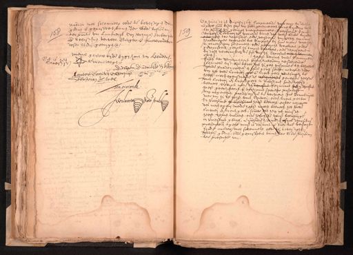 naeder met solemnele eede te bevestigen Alle¬ gedaen ende gepasseert binnen der Stede schiedam ter prentie van Lambrecht Oosterhuys herbergie 58 ende Sebastiaen verwel Burger, ende Innewoonder deser stede getuygen etc. merck gestelt by de eygen hant van leende is het Groenewegen Claesz Adriaen Andriesse hessin Lambert Gerritsz sterhuijs de boter wel Ten oirconde Wilboeter Nots. Publ. Op huijden den je Augustij 1641 Compareerde voor mijn Jan Will Openb. nots. byden hove van hollt. geadmitteert binnen Schiedam re¬ ter pntie van getuijgen naergenomineert, d' eersaeme Jaco¬ woutersz Convoij mr. woonende binnen des voorss. Stede schie¬ 159 ende heeft ter requisitie, ende versoecke van selven harma¬ aerde cooper woonende tot Coringen bij sijne manne, waer¬ in plaetse van solemnelen eede getuycht, verclaert, ende gedeposeert, gelyck hy tuycht, verclaert, ende deposeert bij desen waerachtich te sijn van hij deposant niet een ver opten heeft becomen vande Gecommitt Raden ter Admiraliteijt binnen rotterdam residerende speciale last, ende bevel dat hij geen paspoorte ten behoeve vande paerde coopers en soude geven sonder alvooren, daer van het volle Compen te ende licent gelt ontfangen te hebben, niet tegenstaende de wederhelfte gerechte helft vant Convoij ende licent gelt in Vrieslant soude wesen betaelt Gelyck mede den deposant Requirant heijn deposant heeft geexhibeert, ende verthoont seecker paspoort van negenthien paerden, om die te vervoeren, nae Vranckrijck daer van hij de helft vant Convoij, ende licent gelt in Vrieslant Vrieslant heeft betaelt, echter alhier des niettegenstaende heeft moeten betaelen, het volle Convoer ende licent gelt, sonder dat hem int minsten heeft connen valideren, ende helpen de voorss. betalinge in vrieslant gedaen, Eyndende hier mede syne depositie presenterende tgene voorss. is des noot, ende daertoe versocht sijnde naeder met solemnelen eede te bevestight Aldus gedaen, ende gepasseert binnen der Stede schiede ter presentie van