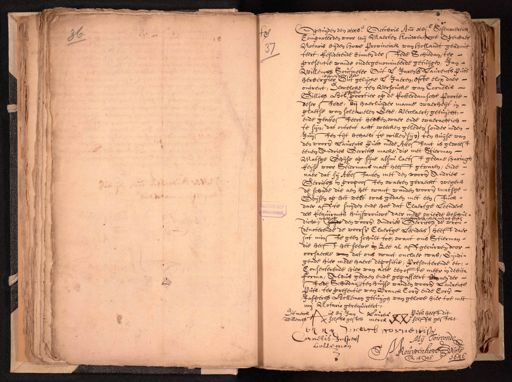 Op huijden den xxven. Octobris Anno xvic. Sesenveertich Compareerden voor mij Maerten Rouwenhove Openbaer Notaris bijden Hove provinciael van Hollandt geadmit¬ teert, Residerende binnen der stede Schiedam, ter presentie vande ondergenomineerde getuijgen, Jan Willemsz Soutmeter Out L Jaren ende Laurents Puts herbergier out gelijcke Jaeren, ofte elcx daer ontrent, Dewelcke ten versoucke van Cornelis Gillis Bos poortier op de Rotterdamsche Voorte deser stede, bij haerluijder manne waerheijt in plaetse van solemnelen Eede, Verclaert, getuijcht, ende geattesteert hebben, waer ende waerachtich te sijn, dat ontrent acht weecken geleden (sonder inden Juijsten tijt behaelt te willen sijn, ten huijse van den voorn. Laurents Pute mede Attestant is geweest eenen Andries Gerritsz macke, die met Stierman, Matsge Ghijse op sijne alsnu laetst gedane haring Reijse voor Stiermans maet heeft gevaren, ende naer dat sij Attestanten met den voorn. Andries Gerritsz in propoosten waeren geraeckt wegens de schade die aen het want vanden voorn. matge Ghijsen op het velt was gedaen met een stuck daer affte snijden ende hoe dat Claertge Leenders des Requirants huijsvrouwe daer mede wierde beschul¬ dicht seijde den voorn. Andries Gerritsz de vrou denoterende de voorss. Claertge Leendersz heeft daer int minste geen schult toe, want ons Stierman die heeft het selve in Zee al affgecurven, door oorsaecke van dat ons want onclaer was, Eijndi¬ gende hier mede haere depositie, Presenterende etc: Consenterende hier van acte een ofte meer in debit Forma, Aldus gedaen ende gepasseert binnen der stede Schieden ten huijse vanden voorn. Laurents Puts, ter presentie van Branck Corn. ende Corn. Jaspersz Bolleman getuijgen van gelove hier toe met mij Notario gerequireert Dit merck is bij Jan Laurens Pits heeft dit Willemsz selffs gestelt merck selffs gestelt en vrach cornelisz Cornelis Jaspersz Mij Toirconde bolleman Houwenhoven Nots @ 1646 1646