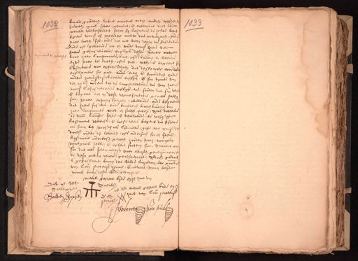boed goederen roerende onroerende actien crediten clederen 1683 1682 Juwelen, gout, sever, gemunt, ende ongemunt, niet ter werelt wtbesondert sulcx sij Testatrice deselve boven tgene voorss. is meerder metter doot ontruymen, ende naer laeten sal, ende dat met vollen rechten van Institutie Ende oft gebeurde dat een vande voorss. haere vier haere geinstitueerde erffgen. deser werelt over ende te overlyden voor haer Comparante ^ kint, ofte kinderen in levende lijve naer te laeten, ofte niet, wille, ende begeert sij Testatrice wel expresselijcke dat desselffs overde erffportie sal gaen, ende erven ende succederen op de andere haere geinstitueerde erffgen. ende soo voorts van den op de andere tot de langstlevende toe van haer voorss. Geinstitueerde erffgen. toe, sonder dat sij wil ende begeert dat in desen representatie plaets hebben sal, maer expresselycken, willende, ende begeren dat haere susters, ende broeders kints kinderen van haer Comparante niet en sullen deren, Alle twelck de voorn. Compte. seyde ende verclaerde te wesen haer Testament wtterste ende laeste wille begeren dat tselve als sulcx ten minsten als Codicille, gifte ter cause de doots onder den levenden, off andersins soo een yders Testament alderbess. plaets houden mach, volcomen voortganck hebben, ende effect sorteren sal, Alwaert over soo dat alle solemniteijten naer rechten gerequireert in desen niet en waere geobserveert, Aldus gedaen gepasseert binnen der Stede schiedam, ter pntie. van Corn. Pietersz Prins, ende Balten Joppen beyde woonende binnen deser stede getuygen etc. merck gestelt bijde eijgen haer van Dit is het Arents, is het merck gestelt by de eygen Aeltge en een lap Prins Groe Nots publ.