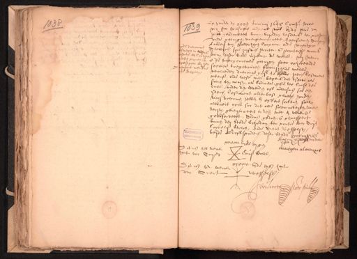 Op huijden den xxx Januarij 1645 Compe. voor 1038 my Jan Willes Openb. nots. byden hove van 1039 hollt. geadmitteert binnen Schiedam residerende ter presen vande getuijgen, naergenomineert, d'eersaemen, Antho¬ Lubbers van Vollenhoven Coopman, ende Maertge inde daeromme Alewijns, syne huysvr poorter, ende poortersse woonen slaegen in resentie een Corven. my deser stede schiedam, de welcke, mij Notari wit papieren ende de naergenoemde getuijgen seer exhibeerde gesegelt bij seeckere toegevouwen, faam hij de welcke passant meede verclaerden daerinne gesz. te hebben haerl. Testament de zegel wtterste ende laeste wille, begerende dat tselve als sulcx ten minsten als Codicille, gifte ter Cause des doots, onder den levenden, off andersins soo een ider Testament alderbess. plaets houdende mach volcomen hebben en effect sorteren sal alwaert oock soo dat alle solemniteyten nae rechte gerequireert in desen niet en waere geobserveert, Aldus gedaen, ende gepasseert binnen der Stede schiedam, ter pntie. van drie Cornelisz Stolck, ende Arent Wesselsz, beijde Groffsminder, deser stede getuijgen etc. Anthonij Lijsbert van bolle gewel bijde eijgen mantgen alewijns Dit is het merck sant van Arien dus Bolck gestelt bijde eygen hant is het merck van Arent wessels Verhoet, Nots. publ.