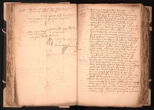 stede getuygen ten desen versocht ende 1658 sonderlinge gebeden, getuijge ende merck gestelt by de eygen huys Maertge Cornelis der hem van gestelt bijde eijgen hout Dit zen merck Maertens van volgh beters ook Willem Janse soo Wilhoet Nots publ. Ger Inden naeme des heeren Amen Inden Jaere vander geboorte desselffs ons heen, ende zalichmaecker Jesu Christi en duysent ses hondert vyffenveertich 1659 opten xvijen. febrij Compe. voor mij Jan Welvers Openb. nots. byden hove van hollant geadmitteert binnen Schiedam residerende ter presentie vande getuijgen naergenomineert Joris Leendersz Bolierhouck, ende Geertge Dircx echteluyden woonen in Vlaerdinger Ambaer, mij Notario ende de getuijgen seer wel bekent, gaende staende, gesont van lichaemen, haerl. wtspraecken, memorien, ende verstant wel machtich, ende volcomentl. gebruyckende alst wterl. scheen ende bleeck, de welcke Innesiende des mensch cranckheijt, ende broosheyt de seeckerheyt des doots ende de onseeckere vuijere vandien, begerende de selve onseeckerheyt voor te comen met dese haerl. Testamentaire dispositie hebben inder bester forme style wegen, ende manieren, soo syl. ende elcx van hy sulcx opt aldervaste ende crachtichste doen conden ende mochten, met vryen onbedwongen, wille soo sy ons verclaerden gemaeckt haerl. Testament, ende gedisponeert over haerl. wtterste ende laeste wille in manieren, hier naer volgende, eerst God Almachtich haerl. zielen bevelende, ende haerl. lichaemen vander zielen, verscheyden sijnde de Christelycke begraeffenis Voorts verclaerde de voorn Testateuren tot haerl. eenige ende universele erffgen. te Institueren, ende te nomineren, gelyck sijl. Institueren, ende nomineren bij desen haerl. kinderen die syluyden alrede byden ander hebben geteelt ende geprocreert, ende noch door Rodes genaede soude moegen byden anderen steelen en procreren by ende bij voor afflivicheyt van desselfs kinderen haerl. kints kinderen bij representatie in plaetse van haere overleden, ouders in alle haere voor te laeten goederen roerende onroerende actien crediten cleden, Juwelen, gout silver, gemunt