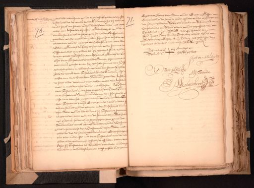 ende voorss. hare kleederen metter dood ontruijmen ende eenigsints achterlaten sa instituerende de voorn. haere kinderen ofte bij voor op vande selve derselver Descendenten, daerinne met rechte van Institutie bij desen, Behoudelijck ende dien verstande, dat deselve geinstitueerde Erffgenaem gehouden ende verbonden sullen sijn, uijtte reijcken te betaelen aen de naergelate weeskinderen van Willem Gerritsz de Lelij te saemen een somme Vijffentwintich car: gulden tot xl grooten 't stuck, ende 't naergelaten Weeskind van Andries Gerritsz de Le beijde haer Testatrices overleden Soonen, geprocreert, haer voorn. eerste man za: gelijcke somme van Gij¬ twintich gulden, in voldoeninge van der selver Legitime Portie, de voorn. haer Testatrices kindts kinderen uijt de hoofde van haer overleden vader competerende, Institu¬ de selve mede daerinne met vollen rechte van Institu¬ maer in meerder ofte verder niet bij desen. ijder haer Testatrices ernstige begeerte, dat Claes Fran¬ haer Testatrices Soon, in mindering van sijn portie nisse naer hem sal mogen nemen ende aen hem be¬ haer Testatrices huijs, Erve ende twee dubbele baenen, staende ende gelegen inde Zijlstraet binnen deser Stede, ende waer inne sij Testatrice jegenwe¬ is woonende, voor een om de somme van Ses bo¬ car: guldens, sonder eenig tegenseggen van iemande Secluderende voorts alle Gerechten ende Weesm. ende insonderheijt de Weeskamer deser Stede, niet willende dat de selve behoudens haer Eerwaerdighe hun hier mede, ofte met haer Testatrices naer te lat boedel ende goederen, eenigsints sal off sullen hebben te Alsoo sij Testatrice tot Voochden over haer minder¬ kinderen en kindts kinderen heeft gesteld ende geno¬ Engebrecht Frans haer Soon, ende Evert Gijse¬ Vertrouwende de selve de goede, opsichte ende regeringe derselver goederen, Alle het welcke etc. Alwaert etc. 72 Versouckende etc. Aldus gedaen ende gepasseert ten Comptoire mijns Nots. ter presentie van Jacob van Houten Coopman alhier ende Govert van Gesel mijn Clercq als getuijgen van gelove hier toe met mijn Nots. gere¬ Dit merck is bij Annetge Theunis dr. selffs gestelt Jacob van Housen Jan Ple Mij Toirconde Debort