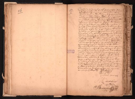 Op hudden den ixen. Maij Anno xvjc. negenentsestich Compe. voor mij Maerten Rouwenhove Openbaer notaris 57 56 bij den Ed. Hove provinciael van Holland geadmitteert, residerende binnen der Stede Schiedam, ter presentie van de sonder genomineerde getuijgen sr. Isaac Heckenboeck woonende tot Dordrecht, Ende verklaerde te Constitueren en machtig te maecken Govert van Gesel mede Nots. en procureur voor de Vier schaer deser Stede, special. om uijt de naem en van wegen hem Const. te innen, vorderen, beuren ende Ontfangen van Willem Sijmonsz backer in den Dorpe ketel, als getrouwt hebbende de wedue van Jacob Kemp de somme van Een hondert negenenvijftich gul. tot xl grooten tstuck, hem Const. competerende over een Jaer huijr van sekere huijsinge Erve en Tuijn staende ende gelegen in den voorss. Dorpe verschenen den bij de voorn. wedue van Jacob Kemp en Willem Sijmonsz in continu¬ atie van de huijs huijrcedulle van date den iiien. Jan xvjC. vijffentsestich, in Huijre gebruijckt, Ende bij verschenen den eersten deser maend man ende quitan¬ cie ende absoluijt acquijt van sijnen ontfang te passeren, Ende bij wegeringe van betaelinge den voorn. Willem Sijmonsz met middelen van Justitie daer toe te constringeren, tot dien eijnde in rechten te spreecken, alle dagen en termijnen van rechten te onderhouden ten uijteijnde toe, Sententie verkregen het 1642 hebbende deselve ter Executie te mogen leggen, met macht om weder een ander persoon in sijn plaetse te mogen achtermachtigen en substitueren. Ende voorts etc: Alwaert etc. Belovende &c. Onder verbande van sijn persoon en goederen geen uijtbesondert subject allen rechten en rechteren, des sal de geconste. gehouden sijn van sijnen Ontfang uijt crachte deses te doen behoorl. reke. bewijs en reliqua, Aldus gedaen en gepasseert ten Comptoire mijns nots. ter presentie van Paulus Moons, ende Melchior kouwenhoove mijn Clercq, als getuijgen van geloove hier toe met mijn Nots. gereqt. Seckenhouck 1669 parles noots A: Louwenhove Mij Toirconde A: Houten