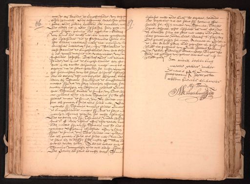 over de eerstervende de Langhstlevende van haer beijden gemaeckt ende besproocken haerluijder geho¬ boedel ende goederen roerende ende onroerende, acte 86 ende crediten niet in ende uijtschulden Item gelt, gout, silver, gemunt ende ongemunt, Cleederen van Linne ende wolle metter werelt gereserve ofte uijtbesondert die de eerstervende sonder kin¬ ofte kinderen naertelaten) metter doot ontruijmen ende eenichsints achterlaten sal, Institueerende de eerst stervende de Langhstlevende van haer beijde in cas voorss. daerinne met vollen rechte van Institutie bij desen. Behoudel. ende met dienver¬ staande, dat in cas de langhstlevende hem ofte haer in een tweede huijwelijck mocht comen te begeven dat de selve gehouden sal wesen voor het solemniseeren van het selve huijwel. uijttereij¬ ende te betalen dese naervolgende Legaten, ten indien hij Testateur Jan Arijens de Langstlevende mochte sijn, dat den selven invoegen alsvooren sal moeten uijtreijcken aen Heijndrick Pietersz Doncker haer Testatrices broeder de somme van Twee ho car: guldens ende aen haer Testatrices suster Pieters doncker de somme van Een hondert car: tot xl grooten t'stuck eens sonder meer. Ende ingevalle sij Testatrice Maertge Pieters Doncker de Langhstlevende mochte sijn, dat de selve in invoegen alsvooren gehouden sal wesen uijtterlijck ende te betalen aen sijn Testateurs Moeder Heijnde Jans dr. oft indien deselve alsdan deser werelt over leden mochte sijn, aen sijn Testateurs naeste ende gerechte erffgenamen abintestato alsdan in leven sijnde de somme van Twee hondert car: guldens tot xl grooten t'stuck eens sonder meer, daermede de selve ten wedersijden sullen moeten affstaen ende haer te vreden houden, Alle het welcke haer Testateuren voorgelesen ende wel beduijt sijnde Ende verclaerden het selve te wesen haerl. Testament uijtterste wille ende laetste begeerte, willende ende begeerende dat het selve sijn volcomen effect sorteren sal, t'sij in crachte van Testament, Codicille Legaet, bespreck, gifte uijtsaecke des doots ofte onder den Levenden sulcx het selve naer rechte ende goeder tieren gewoonte vanden Lande, alderbest subsisteren ende plaets grijpen sal mogen, Alwaert etc. versoucken de etc. Aldus gedaen ende gepasseert ten huijse mijns Nots. ter presentie van Daniel Pietersz Waterman Ende Willem Fredericxsz Blockmaecker Burgers desen Stede als getuij¬ ijgen van gelove hier toe met mijn Nots. gereqt. Jan Ariensz Vestenburch maertie pieters doncker dit merck is bij Daniel Pieters Waterman selffs gestelt Willem frercks blockmaker 2 Mij Toirconde Jaer 1669