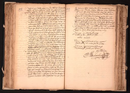 daerinne met vollen rechte van Institutie bij desen, Be¬ 662 ende met dienverstande dat de langhstlevende geho¬ ende verbonden sal sijn haerluijder kind off kinderen die metten anderen geprocreeert sullen comen naertelaten eerl. te onderhouden, alimenteeren ende van alle noot¬ wendighe Lijffs behouften te versorgen tot der selve mondigh daghe ofte huijsel staat ende middelletje de selve te Leijden en stieren in alle tucht, deucht eerbaerheijt ende Godtsalicheijt gel. een goede vader ofte moeder schuldich is ende behoort te doen, een moe¬ dage ofte state des huwel. gecomen sijnde, de voorss. haerl. naertelaten kind off kinderen eerl. uijtte setten sul¬ de Langhstlevendens staet vermogen sal, ende daerin aende selve met hun allen uijtterlijcke ende te betalen de somme van Thien car. gul. tot xl grooten t'stu¬ aenwijsende sij Testateuren het selve haerl. naertela¬ kinderen in voldoeninghe van der selver Legitime por¬ de kinderen naer rechten competerende, Institueerende de selve mede daerinne met vollen rechte van Insti¬ in Behoud ende met die wesende als voor Secluderende voorts alle Gerechte ende weesman ende insonderheijt de Weeskamer der stede Vlaerdinghe van met off of elders daer haer Testateuren sterffhuijs soo mogen comen te vallen, niet willende dat de selve hiermede off met haer Testateuren sterffhuijs eenich sullen hebben te bemoeijen, alsoo sij Testateur de eerstervende de langhstlevende van haer beijden h gestelt tot Voocht ofte Voochdesse over haerl. naertelaten boedel kind off kinderen vertrouwende de selve de goede gesichte ende regeringe der selver alle het welcke hen Testateuren voorgelesen ende op beduijt sijnde, seijden ende verclaerden het selve te wesen haerl. Testament uijtterste wille ende laeste begeerte, willende ende begeerende dat het selve sijn volcomen effect sorteren sal, t'sij in crachte van 303 Testament, Codicille, Legaet, bespreck, gifte uijtsaecke des doots ofte onder de levenden, sulcx het selve naer rechte ende goederen gewoonte vanden Land alderbest subsisteeren ende plaets grijpen sal mogen. Alwaert etc. Versouckende etc. Aldus gedaen ende gepasseert ten huijse vande Testateuren, ter presentie van Sijmon Leendersz vander meer ende Pieter Heijndricxsz van welhuijse beijde woonende tot Vlaerdinge als getuijgen hier toe met mijn Nots. gereqt. die mijn lofs affirmeerden de Testateuren wel te kennen ende te wesen die sij hun babtiseeren ende laten nomen, Dit merck is bij Jan Cornelisz Cousendorp selffs gestelt aefje poulus Sijmon Leendersz vander meer heeft dit merck selffs gestelt Dit merck is bij Pieter Heijndricx van Welhuijse selffs gestelt Mij Toirconde Bartha