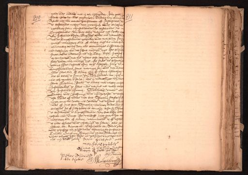 actien ende crediten niet in en uijtschulden, Item gelt silver, gemunt ende ongemunt, Cleederen van Linne en Wolle met ter werelt gereserveert off uijtbesondert, die de eerstervende metter doot ontruijmen ende eenichsints achterlaten sal, Institueerende de eerstervende, de Langhstlevende van haer beijde daerinne met vollen rechvan Institutie bij desen, Behoudel. ende met die verstaen dat de langhstlevende gehouden ende verbonden sal sij haerl. naertelaten kind off kinderen eerl. te onderhoualimenteeren ende van alle nootwendighe lijffs behoute versorgen tot derselver mondigen dage ofte huijwel. state, Ende middelertijt te doen leeren, lesen, schrijven een hantwerck, daertoe deselve best bequaem geoordeelt sullen werden, ten mondigen dage, ofte state des huijwelijck gecomen sijnde, deselve alsdan eerl. uijttesetten, sulcx de Langhstlevendens staet vermogen sal, ende daerenboven aen de selve kind off kinderen allen off tesamen uijtte reijcken ende te betalen de somme van Thien hondert car: gul. tot xl grooten t'stuck, alles in voldoeninghe van der selver Legitime Portie de kinderen naer rechten compeInstitueerende de selve mede daerinne met volle recht van Institutie als vooren, Secludeerende voorts alle Gerechte ende weesmannen ende insonderheijt de welke deser Stede off elders daer haer Testateuren sterffhuijs sij mogen comen te vallen, niet willende dat deselve huijsmede off met haer Testateuren naertelaten boedel ende geeenichsints sal off sullen hebben te bemoeijen, alsoo sij Testate de eerstervende de Langhstlevende van haer beijden hebben gestelt tot Voocht ofte voochdesse over haerluijder naertelaten kind off kinderen, vertrouwende den off deselve de goede opsichte ende regeringe der selver, alle het welcke etc. Alwaert etc. Versouckende etc. Aldus gedaende gepasseert ten huijse vande testateuren ter presentie Cornelis Doens van Schagen ende Pieter Andriesz ten eijcke burger deser Stede als getuijgen van gelove hier met mijn Nots. gereqt. Aert Pieterse mol mantel poules dit merck is bij Corn. Doenselve Schagen selffs gestelt Mij Toirconde Pieter Andriesz ten eijcke ouwenborgh