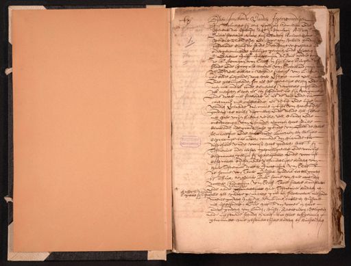 Inden Inhoude vanden Jegenwoordigen Instrumente sij eenen ijgelijcke kennelijck ende Openbaer dat Op huijden xxvijen: Januarij Ano xvjc. Drieentseventich, voor mij Maerten Kouwenhoven Openbaer Nots., bijden Ed: hove van Holland geadmi¬ residerende binnen der stede Schiedam, ter presentie ondergenomineerde getuijgen gecomen ende verschenen d' Eerbare Juffr. Jacobmina du Bois wedue vrij de Hr. Abraham van Cleeff in sijn leven Burgemede Stede ende Hooge heemraet van Schieland, mijn Nots. wel bekent, wesende sieckel. van Lichaem te bedde leggende, doch haer verstant noch wel macht ende gebruijckende, soo als het opentlijck bleecq ende men niet anders conde bemercken, dewelcke innesiende des menschen Leven als een schadige te sijn verganckel ende datter niet seeckerder is, als de doot ende ter contrarie niet onseeckerder als de tijt ende uijre vandien verclaerde daeromme in tijts van hare tijden goederen te willen disponeeren, ende doende het selve met haer vrijen Liberen, wille, wel beraden ende onbedwongen van iemande, alvooren hare Ziele bevelende inde grondeloose genade van Godt de heere Almachtich ende haer doode Lichaem een eerlijcke begravinge ter aerden, comende dan hiermede ter dispositie vande voorss. hare goederen, heeft sij Testatrice inden eersten geprelegateert ende vooruijt besproocken, gelijck sij prelegateert ende vooruijt bespreeckt bij desen, aende gesamentlijcke kinderen van haer Testatrices dochter Jacobmina van Cleeft de somme van Twee Duijsent guldens tot deel grooten t'stuck, aen Pieter Bres soone van haer overleden dochter Hadamina van Cleeff Twee silvere kandelaers ende aende gesamentlijcke haer Testatrices kinderen desselfs Legateert sij Testat alle het verdere gemaeckte gout en silverwerck, mitsga¬ Mobile goederen Inboedel van Linne, wolle en huijsraet niet uijtbesondert, Ende heeft dan voorts in hare andere goederen van Landen, huijsen, Rentebrieven, Obligatie ende uijtstaende schulden en actien tot hare erffgenamen genomineert hare gesamentlijcke kinderen en kints kinderen