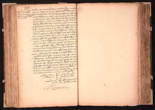 838 helft in alle hare goederen, roerende ende onroerende mits dat meijn actien en crediten niet in de uijtschulden clederen van frans dr. voor ende wollen, niet ter werelt gereserveert off uijtuijt sal trecken bij die sij Testatrice metter doot ontruijmen ende eenich forme van prelegaet achterlaten sal, Instituerende de voorn. hare in alle hare kinderen daerinne met vollen rechte van Institutie bij desen Behoudel. ende met dien verstande dat dese gehouden ende verbonden sullen wesen uijtgereijcken gesamentlijcke kinderen van Theunis Gerritsz met hun allen de somme van Vijffentwintich gul. aende dochter van Andries Gerritsz get. vijffentwintich gul. ende aende gesamentlijcke kinderen Willem Gerritsz haer Testatrices overleden Soonen een somme van Vijffentwintich gulden in voldoen van haerluijder Legitime portie de kinderen nae rechten competerende Instituerende de selve mede daerinne met vollen rechte van Institutie als Secluderende voorts alle Gerechten ende weesende insonderheijt de weeskamer deser Stede niet willende dat de selve hun hiermede off met haer Testateuren naertelaten boedel ende goederen eenichs sal off sullen hebben te bemoeijen, Alle het wel Alwaert etc. Versouckende etc. Aldus gedaen gepasseert ten huijse vande Testatrice ter presenvan Dammis Gerritsz inwoonder deser Stede ende Melchior kouwenhove mijn Nots. clercq als ge van gelove hiertoe met mijn Nots. geregis bij Annetje Dit merck selffs gestelt Theunis Dammis Gerritsz heeft de merck selffs gestelt Louwenhove