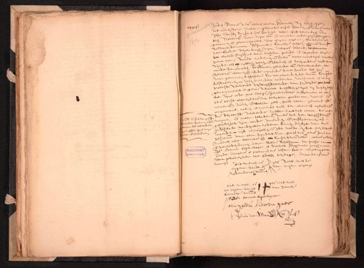 Inden Name des heersamen, kennel. hij eenen ijge dat inden Jare vader geboorte onses heeren alsmalen opgess. Jesu Christi duysent ses hondert twee ende tseventigh een xixe. Novemb. voor mijn etc. ende voorden ondergess. getuij¬ gecomen ende gecompareert zijn argen Ariensz Rodenburg gevarende man ende Jannitje Cornelis echtel. wonende binnen der stede vlaerdingh, mijn Notaris bekent, tober te cloeck ende gesont van lichaem gaende ende staende beijde haer verstandt redenen ende men. volcomentlijck machtich zijnde, als op uijtte scheen ende bleeck ende met anders met een conde bewercken, te kennen gevende etc. verclarende etc. Bevelende alvoren etc. Ende comende hier mede tot hare voorgenomen dispositie, soo verclaerden de voorn. Compt. testateuren in desen deerden anderen reciproce, ende als eerststervende den langhstlevende van hen beijde gestelt genomineert ende geinstitueert te hebben, gelyck hij doen by desen tot zijne ofte hare eenige ende universele erffgenaem in alle des eerst overlydens na te laten goederen, roerende onroerende, linden ende wollen, gelt, goudt silver gemunt oft ongemunt, actien ende crediten niet ter werelt uijtgevaren die den eerststervende metter doot sal comen te op ende daer mede ruijmen ende naer telaten mits dat den langhstlevende omme bijden langh gehouden sal zijn, aende vrienden ende erffgenamen als intestato vanden overleden, binnen den tyt van de te werden meeter uijt te reycken ende te voldoen tot een ge¬ „ ofte hare van de somme van een hondert Car: guldens eens sonder alle ende believen meer, alle twelcke ende consenterende het, aldus gedaen overleden binnen der Stede schiedam ter presen. van de Boude Coperslager ende Michiel Flepenaer jongh in ende burgens Inwoonders deser stede als getuijgen Aen Mr. van geloven hier toe versocht, ten dage maende ende Jaren Coenen voorss. dit merck is gestelt met de eygen handt van drijen een rodenburch voornt. gestelt met dit merck is van Jannitje de eijgen handt Cornelis voorn. Pieter bommer koperslager michgiel flessen haer Hend: de Mans Nots Pub.