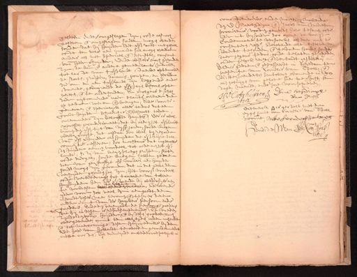 constituerende, ende machtich makende den E: Maerten deijm ende Jacob van Meere procureurs voorden gemelten Hove tesamen, oft ijder int bysonder soo omme de voorn. geleveen ende omgeslagen zijn, ofte alsnoch condemnatie te versoecken, als daerinne te geheven ende omgeslagen souden mogen werden consenteeren respe. Belovende alle tselve sonder dat hij huijrder het voorss. handt int geheel waerde te houden, ende te doen houden, sonder ofte ten deele aen ijmandt sal mogen overdoen daer jegens te doen, ofte telaten geschieden anders als met speciael ende schriftel. consent onder gelyck recht ende verbandt als boven, van heer verhuijrder, Ende wijders noch gehouden Aldus gedaen ende gepasseerdt in schiedam te zyn, de ban ende andere gemeenlants werckende presentie van Cornelis van Tholl. ende tot laste van 't voorss. landt staende opte mo¬ Witte Leendertsz santwech, wonende inhoorn de slooten, grappen, damme, pompen, en hecken als getuijgen van gelove hier toe versocht, te die om en aen t voorss. landt zijn leggende ende dage, maende, ende Jare voorschreven staende, geduijrende de voorss. Jaren behoorl. opte J:V: Cathuijsen Dirck Heijndricxsz schieten, ende te onderhouden, En vervolgens t schot daer uijtcomende naer slants oirbaer, daer van Driel 1678 op te doen voeren ende brengen, Ende voorts dit merck is gestelt met de generale ende specialyck alles te doen dat een ƒ 20 eygen handt van Cornelis van Tholl, goedt haerder schuldich is ende behoordt te doen onvermindert zijn belooffde huyven. Des is wel voornt. witte Leenders zantwee expressel. geconditioneert, dat by aldien het voorss. landt binnen den voorss. tijt van vijff jaren, soude mogen ende de Man Nots. Publ. werden vercocht, dat alsdan soo wel ten regarde 1678 vande voorss. verhuijrder als huijrder de voorss. huijre sal comen te cesseren, soo nochtans dat ingevalle den huijrder eenich voordeel tot ofte aen het voorss. landt drij van laegen ploegen grippen, sloten ofte diergel. soude mogen hebben gedaen daer van geen proffyt off voordeel aende huijrder soude mogen zijn gecomen, dat in dat geval den verhuijrder gehouden sal zijn, het voorss. voordeel ofte verbeteringh tot tauxatie van twee staende bij wedersyts een huijsluijden hen de te verkiesen wel voldaen, Belovende yder voor soo veel hun aengaet, den inhoudt deses naer tecomen ende te presteren onder verbant van de huyrder persoon ende goederen, Ende den verhuyrder de persoonen ende goederen die hij in desen is representerende Te vreden zijnde den voorn. huijrder ende bij desen goed willich overgevende, omme ten allen tijde inden inhoudt ende tot naercominge desen huijrcedulle bij den Ed: hove van Hollandt te werden gecondemneert mette costen, Tot dien eynde onwederroepelijck
