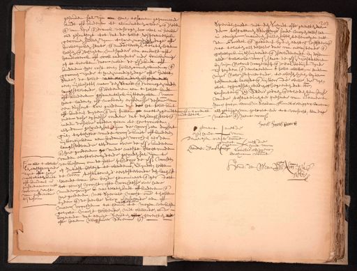 gehouden sal zijn henl. tesamen geprocreerde kindt off kinderen te alimenteren cleden ende reden Special. mede met een schoudt ofte gerechte daer ende van wijs ende dranck versorgen soo wel in sieckt der testateuren Sterffhuys soude mogen valle haer als gesontheyt tot dat de selve respectivelijck in eeniger manieren sullen hebben te bemoegen met gecomen sullen zijn hare mondigen dage off den Boedel ende goederen by den eerst ende eststervende huwelycken state, ende middelerwijl telaten heeren nae te laten als deselve daer van ontlastende ende leesen ende schryven, mitsgaders een ambacht ofte geheelijck uijtsluijtende ende secluderende by desen handtwerck off oock andersints inde bouweringe alle twelcke voorss. staet de voorsz. Testateuren op te trecken, daer mede de voorss. kindt oft bij mijn Notaris voorgelesen ende wel beduijt zijnde kinderen haer costeerl. sullen connen winnen, ende die seyden ende verclaerden t selve wettel. in landen gecomen zijnde thare mondigen dage ofte huwel. myns Nots. stipulerende, te wesen haerl. beijder State, deselve kelckanderen ende gesamentl. testament laetste ende uijtterste wille, die zijl. eerl. uijtte setten naer den Staedt ende vermogen vande wel expressel. wilden ende begeerden dat etc. langstlevende, ende bovendien aen t selve kandt presenterende ende Aldus gedaen ende verleden ten huijse off kinderen gesamentlijck uijtte reijcken voor vande testateuren ter presentie van Leendert haere vaderl. off moederl. erffenisse de somme van Jansz patijn woonende in schiedam ende Cornelis Wiggersz barchman een duijsent Car: gulden die die het selve kint off kinderen, suijver ende vrij sullen ge moeten genietersoonende in't ambacht, als getuijgen van geloove hier toe versocht, ten dage ende ketel maende ende Jaere voorsz. onder dese expresse conditie dat den langhstlevende indien deselve weder quam te hertrouwen Joris Joris broock als dan gehouden sal zijn de voorss. een duijsent gemerct met de gull. ten behoeve vande voorss. kindt off kinderen eijgen handt van uijtte reijcken aen soodanige voochden als den Maertjen Arentsz voornt. met de en handt van langstlevende alsdan over de voorss. kanderen Hendert Jansz patijn Cornelis Wiggers ende hare goederen ge vande naeste bloetvinden barchman voornt. vanden eerstoverlydende gehouden sal zijn t alle twelcke verkiesen, om de selve op ende door de voorss. voochden op Intrest beleijt te werden, Eijndel. hebben Hend. de Man Nots. Pub. den eerststerven naetelaten kindt de voorn. testateuren d'eerststervende den langh zyne ofte haer 1668 levende van hen beijde genomineert ende gestelt off kinderen is institueren met tot eenigh voocht, ofte voochdesse over haere minderjarige naetelaten kindt oft kinderen ende volcomen recht van institutie hare goederen, met speciale macht omme ten allen bij desen tyden ende de saecke sulcx eijschende een off meer voochden tot hem te mogen verkiesen gelycke macht hebbende, niet willende, ofte begerende dat eenige Schouten ofte gerechten ofte heeren Weesmeesteren