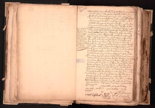 127 Op huijden den naestlesten Julij @o 1656 Compareerden voor mij Jacob Bollaert Openb. Nots. & in Presentie vande onders getuijgen Cornelis en Amoreus steenplaetse woonende opt hooft als ende Maerten Claes Trapper woonende binnen der stede Vlaerdingen als borge ende mede principael, onder Renunciatie vande beneficie ordinis et Excussionis, hem t'effect bekent gemaeckt, Ende bekenden sij Compt. den 11 septem¬ stede. van wel ende deuchdel. schuldich hebbes, de heer Abraham off hondt. van volgen obligatie van Cleeff out Burgemr. deser stede, jegenwoordigh notario valer: hoven heemraed van Schielandt ofte sijn actie gecrijgen t ende bekent sonder de somme van Thienhond Car: gul. tot xl groot het stuck is ten vollen vol spruijtende ter saecke van deuchdel. onder gedane consenteerende aen dat deselve tot sijn principael Compe. contententemente (soo hij ter protocolle verclaerde al ontfangh, in goede harde silvere specie, den lest geroijeert conde gel. penn. met den eerste, Belovende derhalven sij Compt. den J: Bollaert het voorsz. somme munte als vooren, weder te voldoen uijtter¬ binnen Ses eerstcomende maenden, met den Interesse vandie jegens thien stuijvers vant hondert ter maent, ingaende op dato deses. Ende cas vallangen onderhoudinge, tot believen van gemelden heer van Clees soo beloven hij Compte. te betalen gel. interesse, geduijrende ten voller afflossinge toe, mits elckanderen schuldich sijnde twee maenden te voorens te waerschouwen, verbinden & onder verbande subjecte ende speciael. en tevreden sijnde sij Comparanten henl. inden Innehouden deses goetwillich, tot haeren Cost voor denselven hove te laten condemneeren, daertoe van aff last geven ende authoris Abraham hooch brugge ende Cornelis Vinck beijde Procureurs voor denselve hove Belovende e onder verbande alsboven Aldus verleden binnen Schiedam voornt. ter presentie van Isaac vandr. lessche Cleermr. ende Thomas Lubbersz getuijgen Cornelis Cornelissen Maerte Claes Lurens Trap ijserconde Jan Lijbberts P J: Bollaert tesse gestelt