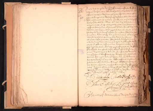 de Naer dat de questie ende differentie ontstaen tusschen de hooftluijden van het mitsgilde, mitsgaders den aen ander off vier der stede Schiedam, als gevonde ter eenre, ende Johannes Drappentier Silversmith derselver stede, ter andere sijde, andermael ende naerder fiael, aen ons onderges. was gesubmitteert. Soo ist dat bij de saecke overgemerckt ende op alles geleden hebbende, voor uijtspraecke verstaen ende verclaert hebben, soo als bij doen bij desen, dat Johannes Drappentier, contant aen ende ten behouve vant voorsz. Gilde, sal moeten betaelen, de somme van tseventich Car: guldens eens. ende daerenbove alle het verteerde op voorgaende twee bij een com als op dato deses gevallen ende verteert, mitsgaders noch in voldoeninge vande nadere oncost bij die van't voorsz. Gild gehadt ende gedaen, de somme van tweeendertich gul. xii stuijvers, waermede alle opgeresene actien, diffen ende verschillen tot op dato deses sullen sijn ende blijven geassopieert doot ende tot niet, in sulcker vougen dat hij Johannes Drappentier, sijn neeringe ende hantwerck weder sal mogen doen ende exerceren als te vooren tot welcken eijnde door een Gerechtsbode, de gedane Interdictie ende verbodt van keringe, onder rechtelijck ventien sal werden affgedaen, mitsgaders aen hem dat segel genstitueert ende ter hande gestelt alle het affgehaelt Silver Toirconde bij ons ondt. in Schiedam den xixe. Maij @o xvjC entsestich vander Becken Cornelis Meest Aron Oostenburgeressen J: Bollaert Nots. onderges. deecken ende hooft lijden van het