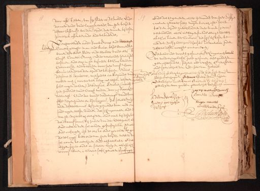 ende dat te genieten, alder ijemanden van haer Erffge¬ door affsterven, van sijn Vader ofte moeder, ende naemen ietwes sullen mogen trecken ofte deelen dat naer doode vande langhstlevende, van haer beijden tot dien eijnde haere Goederen daer vooren special. deselve Erffenisse, tot dien eijnde, daervooren bij desen bevindende, alles niettegenstaende eenige wetten specialijck affecteerende ende verbindende, ofte Costumen ter Contrarie, die sijl. bij desen te Compareerden mede Jacob Drooch ende Neeltge niet doen, mitsgaders hare dispositie Testamentair, indien deselve desen mochte contrarieren, leentgen Cornelis geechte man ende Vrouw beijde woonende binnen deser stede, Vader ende Moeder vande eerst Verbindende voorts gesamentl. de Comparants voor Compt. Cornelis Drooch, Ende verclaerden henluijden tot voldoeninge deses, haere persoonen ende goederen tesamen, ende elcx in het bijsonder, te Constitueren geen uijtbesondert, subject alle rechten ende rechteren Cautionarissen, ende verbinden voor haer voorss. Soon ende specialijck den Ed: hove van Hollandt, Renuncieerende tot dien eijnde de benificien, Admis divisionis et Excussions, mitsgaders int Reguarde van bij hem Compt. Aldus verleden ter presentie van Sr. Pubreet vandr. Groot Vecht Fabrijcquen Gillis vandr. Eijck moeder noch voor soo veel sulcx nae rechten verstaen gelesen Out Burgemr. ende Jacob Andriesz hissing getuijgen van goeden geloove hier toe versocht soude mogen werden) de benificie, Senatus Consulti Jacop arensz drooch haer houdende vande Cracht vandien, door mij Notario Cornelis Droogh onderrecht. Ende dat voorde voldoeninge vande voor vander Ven seijde Negenhondert en tsestich gul. In sulcker voor¬ lengen cornelis daerop andries indien deselve somme, bij haer gemelde soon, niet en Gill vander Eijck hys soude mogen wesen voldaen, dat sij Comparanten ende Baert No van hen, vrij willich overgeven, ende oock bij desen be¬ 160 dat de voorss. somme, bij houder van dese Obligatie, ende metter daet, sal werden geprosequeert, genoten ende ontfangen uijt de eerste ende gereedtste ge¬ die de langhstlevende van haer beijden, metter de sal comen te ontruijmen ende achtertelaten, ende dat eijgen schult ende in sulcker voegen, als off sij de voorss. waren, in effecte, selfs genoten ende ontfangen