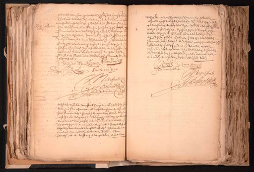 723 en haer gearbitreert, haer goetwilligh bij den hoogen Raden in Holland telaten condemneren, daertoe van matt onwederroepel. last gevende ende Authoriserende Cornelis Vinck „ ende Abraham hooch brugge, beijde Procureurs voor denselven hooge Rade, tesamen oft elx het bijsonder, soo oude Const. te versoecken a daerinne te consenteeren, Belovende etc. verbindende Parthije tot naercominge uytgene voorss. elx haer Persoon ende goederen gees uijtbesondert, onder verband als vooren. Aldus verleden ter presen. vande heer Mr. Pr. Reael Baellus der stede Vlaerding, ende dranck vande getuijgen Jan de Man vande Franck en Jan Heussen J: Bollaert Jaer 1663 achtervolgende den voorst aende Compromisse opt hijer sij voor ons gecompareert, ende deselve gehoort, alsmede hare document rijpel. geexamineert, hebben bij uijtsprake verclaert ende verstaen, dat de gepreten¬ Coop vande Oostindische actie is doot ende te niet, dat parthijen dien aengaende eenige actie Competeren behouden, dat voorts den gede. ende eijn heindrick de contant sal moeten betaelen de somme van Tweehondert en vijftich Car: guldens, ende dat de Costen op de respective Comparitie gevallen alsmede op het lichten vande Condt vervolgen, ende gevolen vandien, mitsgaders 'tgene de Nots. over schrijffloon in desen heeft verdient, bij parthijen gedragen sal werden elcx halff ende halff, ende dat de verdere Costen bij veerthien gehadt ende gedaen, sullen sijn ende blijven gecompenseert, waermede deselve parthijen alle hare voorss. differenten, sullen sijn doot ende te niet, ende geen actie ofte regt op elckanderen pretenderen, reserveren ofte behouden, In eenige manieren, Toirconden bij ons ondt. in schieden 8 feb. @o 1663 Jonas Jacob Hens Jan van Hoek de presente Ble