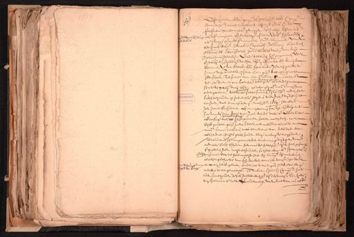 Op heden den xiijen. April @o 1663 Comp. voor mijn Jacob Bollaert Openb. Nots. etc. ter Presentie vande onders. getuijgen, hubrecht Sparrenb. de woonende binnen als Principael, ende Nelletge Pieters Wede. sijn moeder als Borge ende mede Principael onder renunciatie vande deser stede benifice eerst Senatus Consulti Velliani ende noch ordinis et Excussionis, haer d'effecten vandien door mijn Notario onderrecht, Ende bekenden hij Comparanten wel ende deuchdel. schuldichte wesen, Sr. Vincent de kruijt woonende tot Delft ofte sijns actie gecrijgende, de somme van Tweeduijsent Car: gul. tot xl grooten het stuck, ter saecke van het Casseren, Annulleren ende te niet doen van seeckere obligatie onder de hant dato den xxiiien Maij 1661, op dato gecasst. aende Compt. overgelevert, welcke selve somme sij Compt., onder haer sullen behouden op Interesse jegens vier gul. vijfhondert int Jaer, daer van op den 1 maij @o 1664: het eerste Jaer Interesse verschenen ende omme gecomen sal zijn, geduijrende ringe Jare, tot de volle ende effectuele soo voorts van afflossinge toe, die sij Comparanten, sullen moeten doen, met Vijffhondert gul. Jaerl. veel niet meerdr. maer niet met mindr. somme teffens, mits benevens etc. des dat etc. ende dat vrijts gelts sonder eenige coninge te mogen doen, Verbindende sij Comparanten tot voldoeninge uijtgene voorsz. met alle Costen ende schaden hieromme te hebben ende lijden haer persoonen ende goederen geen uijtbesondert, subjecte ende speciael. etc. ende desen vermindert de Indemniteijt, die hij Compt. arenburch alreede ten behoeve van sijn moeder, voor het voorsz. Capitael als hout ende wettel. heeft gedaen, sonder dat dienaengaende hiermede eenige een pen. van ketel novatie wert gemaeckt, te vreden sijnde sij Compt. haer inden Innehouder deses goetwillichl. bij de voorsz. Ed: hove van Hollandt te laten condemneren, daer toe van nu aft