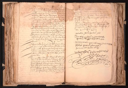 belen de Erffpacht voor alle het geene voorss. de somme van Alberduijsent achthondert ende vijffenveertich guldens ende daerenboven eenige dubbelde ducaet, tot Speldegelt, voor des huijsvrou, welcke somme den Cooper belooft te bet. in goeden gepermitteerden gelde uijtterl. voor off maij toecomende @o. 1669. nevens het doen van opdrachte, die alsdan precijse sal geschieden, ende daer hij geelbaert werden, naer Costume aldaer, Ende dat Vrijts gelts sonder eenige Cortinge ten doen, sulcx dat den Cooper alleen sal moeten draende betaelen, den xl. pen. het schrijver maecken ende Legelen vande brieven, met het gene daer aen dependeert, ende op de gift moet werden betaniet uijtgesondert, sonder eenige Cortingh ter Werelt Verbindende soo Cooper als vercooper, tot naercominge ende voldoeninge deses, haer persoon ende goederen geen vuijtbesondert deselve onder deerende allen rechten ende rechteren, ende speciaelijck den Ed: hove van Hollandt, Compareerde mede Pr. Wiggersz heerhijlwoonende tot vlaerdingen, wiggen Pietersz rodenpijl woonende inden Ambachte van ketel Philps Pietersz hodenpijl woonende opt oost deser stede vader ende broeders vande Cooper, Ende verclaerden sij Comparanten elcx in solidum onder renunciatie vande benificie ordinis divisionis et Excusconis, haerselven te Constitueren, Cautionaris ƒ heden pijl, ende dat voorde voldoeninge de voorss. voorwaerde, ende tgene tot vande Coop is gestipuleert, daer onder verbinden haer persoonen ende goederen geen uijtbesondert subject alsvooren, Actum in Schiedam voorn. ter presentie van Jan Conn. van burch ende Dirck symens getuijgen van goeden geloove hier toeversocht, Jan Cornelisse Cleij Cornelis pieteroeven pijl Jacob Cornelisz vander burgh Pieter Wiggers hoeden en Wiggert Pietersz haren Philps Pieters heden pijll Jan Cornelisz vander burgh dissens present J: Bollaert Nots 4 1668