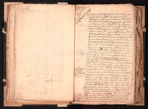 6 2e. septemb. 1668 noch tie aende voochden Inden name des heeren Amen kennel. zij eenen gel. Dat op heden den xiie. april @o 1668 voor mij Jacob Bollaert, openb. nots. etc. ter presentie vande onder getuijgen, gecompareert ƒ is, Catalina Guel Jongedr. out 26 Jaren Jegenwoordich woonende binnen deser Stede mi¬ Notario ende d'ondergenomineerde getuijghdeel bekent) wesende zieckel. van lichame te beddeleggende, haer verstant, redenen, memorie ende spraecke wel hebben ende volcomentl. gebruijcken soo dat Opentl. bleecq ende men niet anders en soude bemercken, voorts Mutatis mutandi Comende dat ter dispositie, soo verclaerde sij Compte. geprelegateert ende gelegateert te hebben soo als volcht, te bet. aen het kint ende dochterken van haer broedr. Wouter Cool, haer Zilver op Zij dat middelerwijle sal wesen ende berust onder de bewaringe van haer Reij¬ Lijsbeth Pols, ende stervende tusschen ende voor die tijt sal het Zilverwerck, comen aende voorn. Wouter Cuel. aen haer Suster Josina haer swarte laecken rock, met haer affsetsel off schilderije ende mits haer noch haer swarte turcxe rock aen haer Suster kinder goet aenbedeelt Trijntge, alle haer verdere Cleederen van linne ende wolle aen haer moe behalven Ses hembden, die sij bespreeckt, aen haer Suster lambrechje, ende noch aende voorss. Trijntge, haer goude naelde met stricken aen haer oir, een boeck met zilverbeslach, ende twee goude ringen, mits aen het kit vijlant uijtkeerende een ander boeck mede met Zilver beslach gecomen van haer moedr. dat hiermede dienthalven wert verbeter ende aen haer meij aeltge kievits, een kannetge met zilver litt, ende naer haer overlijden, aen Josina voorn, ende en acht aen Jan Fransz een zilver lepel, staet op niet teeuw egra¬ in dese werelt, ende noch aen Wouter ende Joris van Castelij elck en zilver lepel, daer haer vaders wapen opstraet, ende