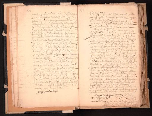 802 alle voorgaende Testamenten Codicillen ende andere tonnen van dispositie, bij haer te saemen ofte ijder apart gemaeckt, geen uijtge niettegenstaende deselve mochte Innehouden den Clausule derogatoir daer van sij verclaren geen heunisse te hebben, Comende dan op niet ter dispositie, Ende des, sij Testateur in sijn reguarde, verclaerde tot bij Erffgenaem genomineert ende geinstitueert te hebben, soo als sij nomineert ende Institueert bij desen, Aen mol, woonende tot Schiedam, sij neven ende bij voor afflijven. desselfs descendenten voorde eene helfte, mits dat hij als legaet sal inven¬ uijtkeeren aen sijn Compt. nichte, genaemt Ge¬ Pieters, de somme van Achthondert Car: gl. tot xl grooten het stuck, sonder meerde te mogen eijschen ofte pretenderen, ende inde wederhelft de kinderen van sijn overleden Suster Gerritge Dircxs, ende bij voor afflij¬ ven een derselver haer kind off kinderen bij representatie naer uijthollandts recht Ende dat in alle de goederen soe roerende als onroerende egeen uijtbesondert, bestiaen dircksen Ende sij Testatrice in haer reguard mede Disponerende verclaerde geinstitueert te hebben ende te institueren bij desen, haer voorss. man in een gerecht kints gedeelte ofte filiale portie, ende in ordere goederen, haere kinderen ende kintskinderen, naer duijthollandts recht. ende dat met volcomen rechte van Institutie in alle de goederen bij haer achterlaten ge vande wesende. elcx in haer regart Laestel. hebben sij Testateuren wel expres. gesecludeert ende uijtgesloten alle gereet ende beesmanige Speciael. Schout ende geregt en de weescamer van Maessluijs ende allen anderen daer haer sterffhuijs sal comen te vullen, nomineren Committeeren ende authoriserende tot voochden over haer minderjarige Erffgenamen, te weth hij Tes¬ Constant de Wolff ende hubrecht Jood bleijcker, ende sij Compt. aen haer zijde Bastiaen Engels, ende Pr. Reijndricks, gevende deselve soodanige last macht ende bevel als nae recht wert gereqt. ende mede omme bij affsterven van den derselven een ander in des overledens plaetse te surrogen, ende voorts deselve voordije schip te bedienen, soo als sij in goeder Conscientie bevonden sullen te behooren, alle het welcke etc. Aldus verleden ter presentie van Jacob verbeecq ende Con Fransz van leeuw getuijgen etc. die mij Notario geaffirmeert hebben de Compt. wel te ken¬ barck dircksen ƒ Jacob Verbeeck Cornelis fransse van leeven Bollas