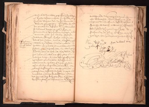 „ ende by voor affsterven van een oft twee van hen waer ende voor wien gepasseert, niettegen¬ staende deselve mochten Innehouden eenige Clausulen derogatoir, daer van sij Comparante verclaert geen geheugenisse te hebben, comende dan op nieus ter dispositie. Soo verclaerde sij Testatrice, tot haer eenige Erffgenamen genomineert ende geinstitueert te hebben, ende nomineren ende Institueren by desen deerbaren, Aechge haesge ende Cornelia duboes, haer nichten, tesamen, ende de langhst¬ levende van deselve, Ende dat in alle de goederen, soo roerende als onroerende, actien ende Crediten, geen uijtbesondert, van wat natuij¬ ende Conditie die bevonden sullen werden, bij haer Testatrice metter doot achtergelaten ende ontruijmt te sijn, Onder dese expresse Conditie dat deselve geinstitueerde Erffgenaemen sullen moeten uijtkeeren ende laten genieten aen haer Broeder, Capn. Elandt du Bois, een gerecht vijffdepaert in een Campelandts gelegen voor vijff ende een halve margen, inde noortketel onder den Ambachte van ketel daer jegenwoordich bruijcker van is Pieter Jansz Langelaer, haer Testatrice in Eijgen¬ toebehoorende, Sluijtende voorts uijt alle Gerechten ende bemannen ende Speciael. de Weescamer deser Stede Alle het welcke etc. alwaert etc. versoeckende etc. Aldus verleden ten Comptoire mijns nots. ter presentie van Jan Bacx ende Reijn Ariensse getuijgen van goeden geloove hiertoe versocht de Compt Jan Willems lap gestelt gestelt bij off eijn Ariens Afrekent J: Bollaert Nots. ƒ ebbe