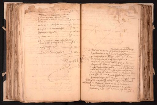 kamer, 2 tafelbanck rock ende ƒ 2-10 bordt 12 hembdens, hembdens, 8. vrouwe hembdens, 3. rockens, twee mantels, hemtrocken 2 kinderhembtrocken, 1 rock ƒ 25-0- tsamen om ƒ 12-0- ontrent ge tonnen turf op ende on¬ ƒ 14 6. wagens hout met rootackebossien ende ƒ 18-0 schot met 2. wagers ende ƒ 20 25 kaesen op 3 Jacken, spiegel, 1 eetens tresoir, spinnewiel 6:0 1 wande flessen ende achtendom ƒ 14:0: 1 ploeg zeijsens ende om tackebos „ behalven het hout turff ende schuijtge Ende naer dat de voorss. goederen ende beestiael, ƒ 16:0: Een Melckschuijtge in presentie van ons Notaris ende getuijgen waren gebracht, buijten gront, ende macht, onder den blaeuwen hemel ende sulcx behoorl. verbodemt uijt de soo verclaerden den voorn. Otte vandr. mij, mede Comparerende ende den transporte accepteren, alle de voorss. getransporteerde goederen precario ende ten bede vande twee eerste Compt. te laten tot haer nootsaeckel. ende armoedich gebruijck, doch onder Conditie ende met dien verstande, alleen tot wederleggens ende simpele vermaninge van hem vande Vrij, omme ten allen tijde deselve weeten gel. sij alsnoch beloven bij desen deselve middelerwijl niet te vercoopen, veraliendien off aen een ander te transporteren, directel. off indirectel. noch in geender Maniere, verbindende tot voldoeninge deses elcx haer