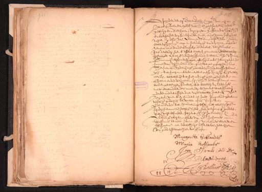 40 0 Op heden den xe. Decemb. 1671 Compe. voor mij Jacob Bollaert openb. nots. etc. ter presentie vande ouders. getuijgen, d'eerbaren Margrieta Hofflandts wede. etc. boedelhouster van sa: Wouter Cool, ende Maria Hollandts dochter. gesusters, woonende binnen deser Stede, Ende bekende Compe. elcx in solidum ende voort geheel, onder de renunciatie vande benifitie, de duobus vel pluribus reis debendi, haer t'effect bekent gemaeckt, Ende bekende der wel ende deuchdel. schuldich te wesen, Sr. Adriaen ominicus Groodtschipper, ofte sijns actie gecrijgende, de somme van vijffhondert Car: gul. tot xl grooten het stuck tersaecke deuchdel. geleende ende op Interesse gedaen penn. tot Jaren contentemente al ont. de leste pen. metter eersten, belovende ende tot haer neringe geemploijeert, Belovende derhalven, sij Compt. de voorsz. somme wederop te leggen ende voldoen, tot believen van wedersijts mits elckanderen drie maenden te voorens waerschouwen Ende ondertusschen daer van te betaelen, Interesse Jegens vier ten hondert int Jaer. Ingaende op dato deses ende geduijrende ten vollen aflossinge toe, verbindende tot voldoeninge deses, met alle Coste ende schaden hieromme te hebben ende lijden, haer persoonen ende goederen geen uijtbesondert subject ende. ende speciael. etc. Aldus verleden ter presentie van E. Johannes Sissimus Stadts docht ende nicolaes blaeu voet Schoolmr. int Weeshuijs deser stede, getuijgen van goeden geloove hiertoe versocht Margrieta Hollandts Maria Hollants Joan is mus Med. Dr. 12 Blaeu voet J: Bollaert Nots. 44 6