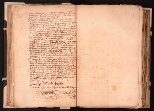 Alles in voldoeninge van derselver Legittime ofte wettelijcke portie, ende tot dien eijnde haer dat me tot mede Erffgenaemen, Instituerende sonder inde te mogen eijsschen ofte pretenderen Ende sij Testatrice, in haer reguart mede disponee¬ verclaerde tot haer eenige Erffgenaem, genomineert ende geinstitueert te hebben, soo als sij nomineert ende instit. bij desen hare twee kinderen bij haer eerste man Leendert Leendertsz benneweg verweckt, ende die de selve, bij haer jegenwoordige man geprocreeert sall comen naer telaeten, Mitsgrs. deselve haer ma¬ in een filiale portie, ofte kints gedeelte, ende dat in alle de goederen, bij haer testatrice, metter doot te ontruijmen, roedende ende onroerende, van wa¬ natuijre die sijn ende bevonden sullen werden, geen uijtbesondert, met vollen regten van Institutie Laestelijck hebben sy Testateuren elcx in haer reg. wel expres uijtgeslooten soo als sij doen bij desen, alle geregten ende weesmannen, ende specialijck de weescamer der Stede Vlaerdingh voorss, ende allen anderen, daer haer men te vallen, stellen sterffhuijs soude mogende een sijn minderjarige hij Testateur, tot Erffgenaemen, sijn voorss. huijsvrou, met machtig soodanige toesiende voocht te verkiesen, als deselve sal bevonden te behooren. Ende sij Testatrice, aen haer zijde, Arien leender t'Jongh ende Gerrit Jacobsz dewillige, beijde woonende binnen der voorss. Stede Vlaerdingen gevende elcx inden haren soodanige macht cracht ende bevel als nae rechten ende Costumme vanden lande vereijst wert, ende mede omme bij afsterven van denselven een ander in des overledens plaetse te mogen verkiesen alle het welcke etc. allaert etc. versouckende ende Jac ter presentie van Johannes van Immeraedt, Procuratie ende van Tene kruijse getuijgen goede geloove hier toe versocht Cornelis leenderse jongh kniertge Leenders Cornelis Teunisse Ruigh Timmeraet Ao. 162 Bollaert Ao1644 ƒ 24