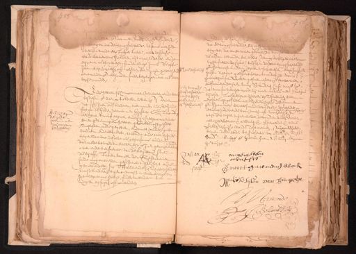 753 Een legen de gilde getrout met Salomon van heuckelin ƒ 56 zegel dat met vollen rechte van Institutie dat de langstlevende, sich we¬ wegen dat de langhstlevende, terstont nae het begave, dat in sulcken gevalle den voorss. overlijden vande eerst afgestorven, alles desselfs die alsdan bevonden sal werden de langstlevende gelibrecht eerststervendens goederen, uijt crachte deses, ende van het stellen Cautie, tusschen deselve langhstlevende eijgener authoriteijt, sonder eenige Immissie ofte ende de voorss. kinderen deijl daer sal wesen, elcx halff ende solemniteijt van rechten off trechteren, sal mogen appresende hare descen¬ halff, 'tselve geeffectueert, voor dat het voorss. aenvaerden ende behouden, sonder tegenspraeck oft be¬ houwelijck sal wesen gesolemniseert ende voltrecken, van ijemanden, substituerende haer voorss. kinderen Casu voorss. ende te bij voor dat voor soo veel het noodt zij maer anders niet) daerinne dien denselven Ende hebben sij Comparanten verclaert, ende vercondent bij desen. Laestelijck hebben sij Testateuren wel bij desen, ende daerop te willen leven ende sterven presentatie expres uijtgesloten alle gerechten ende Weesmannen dat sijl. haer drie kinderen, met namen Comelde sesselfs plaet ende speciael. de weescamer deser stede, de Een de langhstlevende tot voocht off voorn. desse, die fijtge de gelde, getrout met Ghijsbert Corn. Turff in tijt ende wijle, in haer boedel bevonden sullen werden eerlijck trouwelijck, ende Christelijck naer haer alle het welcke etc. alwaert etc. versoeckende etc. Aldus staet ende vermogen hebben gecleedt, uijtgesett verleden ten huijse vande Testateuren, staende op de have Bruijloften mede gegeven, ende met houwel. goet binnen deser stede, ter presentie van Maerten lijst voldaen ende betaelt, willende ende wel expres¬ vander brugge ende Gerrit Harmensz blocq Sergens begerende dat deselve als gehoorsame kinderen getuijgen daer mede te vreden sullen sijn ende haer gecontenteert over ende tersaecke van de Legittime Portie angenieten gestelt bij die bij affsterven van een der Testateuren cornelis soude mogen werden gesustineert geeijscht ende een Gerrit harmensz block gepretendeert, Instituerende ende aenwijsende selfs voorss. kinderen tgene voorss. in voldoeninge en haer legittime portie, sonder meerder te Weerte sijten van Bruggen nogen eijsschen off pretenderen Mij torconde J: Bollaert no. ƒ 4 6