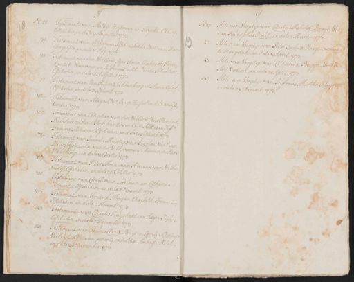 No. 88. Testament van Mathijs Heijlman en Trijntie Elbert Egtelieden, in dato 9 Augustus 1751 Testament van Catharina Sophia Lokke, Wede. van StaGeorge Gets, in dato 10 Aug: 17 Testament van den Wel Eerw. Heer Amos Lambrechts, Predikant te Waverveen, en Juffrouw Bartha Jacoba Schouten Egtelieden, in dato 16 Augustus 1751 98. Testament van Jan Pieterse Dikkenberg en Maria quak Egtelieden, in dato 3 Septemb: 1773 102. Testament van Abigael Vos, Jonge dogter, in dato 22 september 1772 Transport van Obligatien van den WelEde: Heer Hendrik Boonders, rustende Predikant van Oud Albas en Juffr. Femina Molenaar, Egtelieden, in dato 28 Septemb: 1747 Testament van Jannetie Maartens van Rossum, Wede: van Huijg Isbrandse van der Valk, wonende binnen de Seede Vlaardinge, in dato 13 October 1771 Testament van Pieter Monnemen Adriana van Valker burg, Egtelieden, in dato 26 October 1773 Testament van Cornelis van Leeuwen en Catharina Vermaat, Egtelieden, in dato 1 Novemb: 177 Testament van Fredrik Hoog en Elisabeth Bomert Egtelieden in dato 9 Novembr. 1772 176. Testament van Cornelis Ruijghart en Aagie Rool Egtelieden in dato 7 December 177 Testament van Teunis Claasz: Buijs en Cornelia Gijsbregt Voskuijl, Egtelieden, wonende onder den Ambagte Ketel in dato 31 December 1773 No. 27. Acte van Voogdije van Cornelia Michiels dr. Knoop, Wede: van Rudolphus Krul, in dato 8 Maart 1741 42. Acte van Voogdije van Pieter Rochusz Knegt, woonende te Hoogvliet, in dato 19 April 1772 4. Acte van Voogdije van Catharina Bagijn, Wede: van Arij Verboon, in dato 28 April 1773 15: Acte van Voogdije van Juffrouw Martha Kleijn in dato 24 Decemb: 1773:
