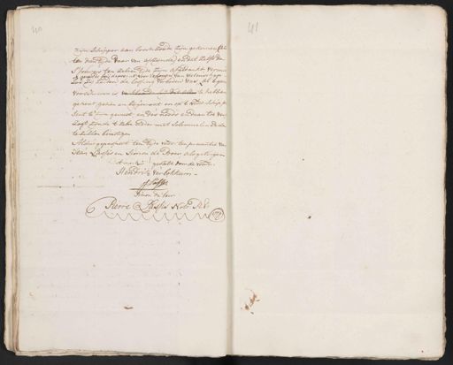 zijn schipper aan boort zoude zijn gekomen (als ten dien tijde daar van afzijnde) en dat zelfs de s' jouwers ten zelven tijde zijn afgedankt vermi¬ gevende hij deposant voor redenen van wetenschap zoo zij zeiden de lossing verboden was, ^ al t' gen¬ voorschreven is, verklaarde hij dit alles te hebben gehoort, gezien en bijgewoont en op 't voors: schippr. sent te zijn geweest en des noods en daar toe ver¬ zogt zijnde 't zelve nader met solemnelen Eede te zullen bevestigen Aldus gepasseert ten tijde voors: ter presentie van Jean Lassis en Simon de Boer als getuigen dit merk is gestelt door de voorn: Hendrik Verbokkum. J. Lossis Simon de boer Pierre Lassis Nots: Pub: V.