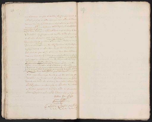 en uit dien hoofde bekende hij Comparant en deugdelijk de voors: somma van Twee honder vier en twintig Guldens en Agt Stuivers Aan meergenoemde Juffrouw Wed:w d' H:r A. de Klopp ^wonende te Leijden ^ofte den wettigen houder dezer schuldig te we¬ Belovende hij Comparant van de voors: somma te zullen betalen Alle half Iaren interesse te ^ van ijder hondert drie Guldens en tien stuivers ^ in 't Jaar met gaders Alle ^ Iaren van ’t Capitaal aftelosse vijff Guldens en zoo van half tot half Jaar tot dat de gansche somma van twee honder vier en twintig Guldens en Agt stuivers zal benevens de Interessen van 't Capitain afgelost en betaalt, en welke eerste afloss verschenen zullen zijne voldaan Zullen moeten begon worden op den Eersten Julij 1700 twee en Zeventig Belovende hij Comparant Wijders aan Mejuff=w de Wed:n d’ J: A. De klopper alle half Jaren promptelijk te zullen betd de Couranten door voorn: ^ aan hem Compt: reeds toegezonden en nog toe Tot naarkominge van 't gene voorschreve st verbind hij Comparant zijn Persoon en goed dezelve stellende ten bedwang van Allen's Heeren ende Regteren en specialijk den Ed: Hove Van Holl Aldus gepasseert ten tijde voors: ter presentie Jean Lassis en Simon de Boer, Als getuigen Willem Van Arons Jean Laffis Amen de boe Pierre Lassis Nots. Pa uijden