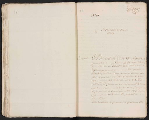 Doom No: 10 Procuratie ad Negotia art: 60 Gegrosseert - Op Heeden den 10:en April 1772. Compareerde voor mij Pierre Lassis, Notaris Publica bij den Ed: Hove van Holland geadmitteerd te schieda Residerende present de naargenoemde getuigen Jacobus ^ van den Berg, wonende binnen deze stad in qualiteit als hebbende van den 11:en Julij 1768 met Jan Jasa, mede binnen de voors: stad ^ wonagtig Schiedam ^ in Compagnie en voor gemeene Rekening gesleeten en getimmert, dog van welke Compagnieschap hij Comparant bij Insinuatie in dato 14:e Ianuarij 1772 met den 18:e dier maand, is afgestaan en uitgescheiden Ende Verklaarde hij Comparant te Constitueren ende