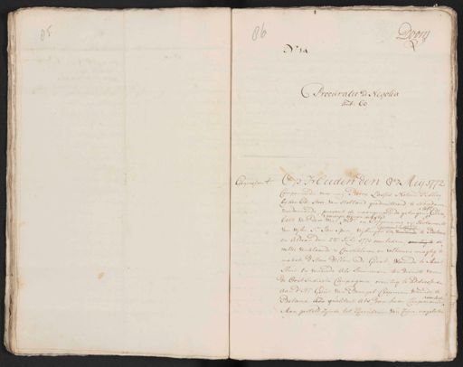 99 Doom No: 14 Procuratie ad Negotia ant: 60 Gegrosseert. Op Heeden den 8=en Meij 1772 Compareerde voor mij Pierre Lassis Notaris Publicq bij den Ed: Hove van Holland geadmitteerd, te schiedar resideerende, present de naargenoemde getuigen geeffte Elisa wonende deze stad beth van der wiel ^ Wed=e en Erfgename ex Testament woont hebben van wijlen Sr: Jan Spin, vrijburger en won ende te Batavia en Aldaar den 23e. Julij 1773 overleden, om zig te d welke verklaarde te Constitueren en volkomen magtig maken, d' Heer Willem De Groot, wonende te Maas sluis en varende als stuurman ten dienste van de Oost Indische Compagnie om zig te addresseren Aan d' Hr: Gerrit van Breugel Coopman wonende te ^ overleden Batavia als qualiteit als, door haar Comparante Man gesteld zijnde tot Executeur van zijne nagelaten