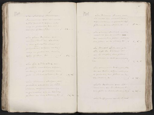 200 1201 Aan Willemina Simons, voor Aan Anthonij Hulstman het maken van rouwkleederen voor het maken Timmerman volgens reekening en quitantie vijf van de dood kist, volgens reeken guldens en veertien stuivers dus 5„ 14„ ning en quitantie, vier en ƒ 24.- twintig guldens dus Aan Annetje Snellaart mutse¬ maaksten voor het maken Aan Anna Wesselaan voor van rouwmutsen volgens reekening rouwgoed door den Overleede¬ twee guldens en zes stuivers, dus. ƒ 2„ 6„ ne Aan Aaltje de Zeeuw gelegateerd volgens reeke¬ Aan Elisabeth Lande voor gele¬ verder koffij, thee brandewijn etca. ning en quitantie twee en aan het sterfhuis, twee guldens vijftig guldens, dus 52„-„ vier stuivers en acht penningen, drie Aan IJda van der Beek voor geleeverde rouwkousen, volgens Aan Hermanus Verbruggen, Blee¬ reekening en quitantie eene ken voor Wasloon, volgens reekening en quitantie vier guldens en zes¬ gulde en zestien stuivers, dus- 1 16 tien stuivers dus ƒ 4 16„ Aan Johanna Heiligers voor Aan de Weeskamer voor het geleeverde strikken en hand¬ resumeeren van het Testament schoenen volgens reekening eene gulde en zestien stuivers, dus ƒ 1„16„ en quitantie vier en twintig guldens en tien stuivers, dus ƒ 24„10„ Aan de Regenten van het St. Jacobs