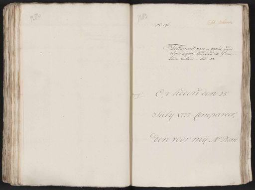 Relat. Bulderen No. 196 Testament van en vrouw gegoe¬ volgens opgave beneeden de ƒ 20000 zonder verband art: 51. Op heden den 25 gegross: Julij 1777 Compareer¬ den voor mij Mr. Pierre