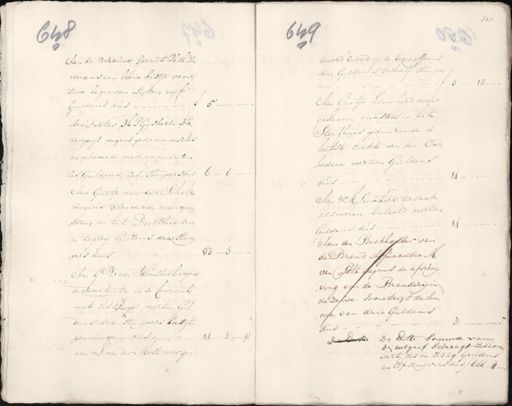 beije Aan de Weduwe Gerrit Veth zn weegens een beene kistje voor twee begraven Lijken vijf Guldens dus - - Aan Doctor H. PGijsberti Ho¬ denpijl wegens gedaane visites en geleeverde medicamenten Zes Guldens zes stuijvers dus Aan Grietje van der Schalk weegens geleeverde rouwgoe¬ deren en het Doodkleed drie en tagtig Guldens drie stuij¬ vers dus Aan G. W. van Hemsdaal wegens de advertentie in de Courant met het Regel veertien Gul¬ dens drie stuijvers en agt penningen dus aan L van der Most voorge¬ 649 leeverd brood op de begraaffenis drie Guldens twaalf stuijvers dus. Aan Grietje Launhard voor gedaane diensten in het Sterfhuis geduurende de laatste ziekte van den Over¬ „leedene veertien Guldens 6 - 6 dus Aan W M Lansihard ter zaake als vooren, betaald veertien Guldens dus - Aan den Boekhouder van 83 - 3 de Brand Assurantie M van Pelt wegens de afschrij¬ ving van de Branderij in dezelve Societeijt de Som¬ ma van drie Guldens 3-„ dus. De Eerke De Eerste Somma van den uitgaaf bedraagt zes hon¬ dert zes en zestig Guldens en Elf stuijvers dus ƒ66-11-