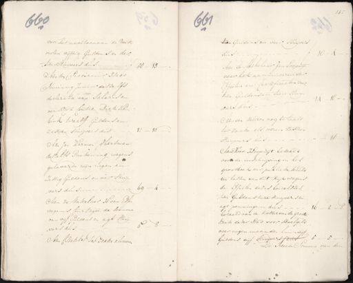 660 voor het maalloon aan de West¬ molen vijftig Guldens en der¬ tien Stuijvers dus 50 - 13 Aan den Procureur Isaac Penning Junior deszelfs declaratie van Salaris en verschot Contra Dirk Hen¬ bink twaalf Guldens en Zestien stuijvers dus 12 - 16 - Aan Jan Harmen Hartman deszelfs Reekening wegens geleverde wijn negen en Zestig Guldens en vier stuij¬ 69-4- vers dus. Aan de Makelaar H van Essen wegens Courtagie de somma van vijf Guldens en agt stuij¬ 5 - 8 „vers dus Aan Bakker ter zaake als vooren 99 tien Guldens en vier stuijvers dus 10 - 4 Aan de Makelaar Jan Loopuijt over het aanzuiveren der Effecten en Certificaaten veer¬ tien Gúldensen tien stuij¬ 10 „ vers dus- Aan den zelven nog betaald ter zaake als vooren zestien Stuyvers, dus- Aan d Heer Koopuijt betaald voor de enschrijving in het grootboek der publieke schuld ten lasten van dit Rijk wegens de Effecten dezes boedels zes¬ tien Guldens twee stuijvers en agt penningen dus - 16 - 2 - betaald aan de koster van de groote kerk dezer Stad voor Stoelgeld over negen maanden huur vijf Guldens vijf stuijvers dus De Tweede Somma van den