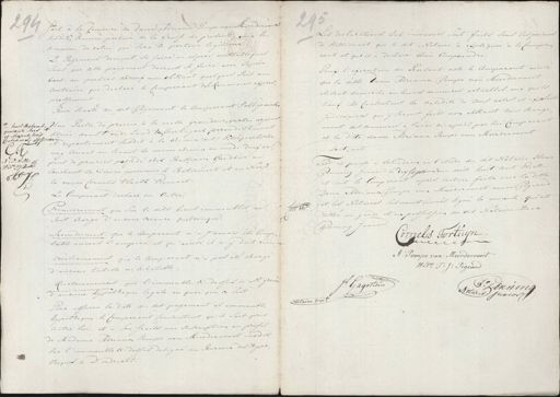 294 fait à la demeure de dame Adriana Compe van Meerdervoort susdite, comme porteur de la Grosse du present, ou à la demeure de celui qui sera le porteur legitime Le Paijement devront se faire en espece mettabliques sans que cette paijement devront se faire avec Papier bons. au parties d'iceux non obstant quelques lois au contraire que declare le Comparant de le Renoncier expres¬ pressement. Pour sureté du dit Paijement le Comparant s'oblige ainsi¬ # nis Weekans, Une Partie de prairie à la vielle grandeur, quatre arpens tuee dans t' oude Land van Poortugaal, arrondissement tout des prouvé departement susdit à la chemin (dit) Pittepoelsche weg tenant au levant la meme chemin au midi deux ar¬ G.F. pens de prairies possedé chez Bastiaan Goedbier au A: P: V: M: Wedw. J:J:P Couchant la riviere nommer le Botermeet et au Nord J.P.J. la veuve Cornelis Klaatz Vermaat. Le Comparant declare en Outre. 295 Les déclarations sus: enconcées sont faits sous les peines de Stellionaat que le dit. Notaire à expliquée à le Compa¬ rant et qui il a declaré bien comprendre. Pour l'execution du Present acte le Comparant ainsi que la ditte Dame Adriana Pompe van Meerdervoort elisent domicile en leurs demeures actuelles aux quels lieux ils consentent la validité de tous actes et exploite judiciaires qui ij seront faits non obstant tous change¬ ment des demeures à faire ci-après par lui Comparant et la ditte dame Adriana Pompe van Meerdervoont Dont acte Premierement que sur le dits biens immeublis ne sont charge d'aucune creance quelconque. secondement que le Comparant n'a j'amais été comp¬ table envers l'empire et qu'ainsi il n'ij doit rien. que le Comparant n'a pas été charge Troisiememen d'aucune tutelle ni curatelle. Quatriemement que l'immeuble ci-dessus n'est greve potheque legale en quoi que ce soit meur Pour assurer la date du dit paijement et immeuble hijpotheque le Comparant consentent qu'il soit pris contre lui et à son fraits une Inscription au profit de Madame Adrianen Pompe van Meerdervoort susdit sur l'immeuble ci-dessus designé au Baresu des Hypo¬ theques à D'ordrecht. Todt et passé à Schiedam en l'étude du dit Notaire Isaac Penning Junior le dix sept Juin mil huit cent Preize et ont le Comparant après lecture faite avec la ditte Dame Adrianen Pompe van Meerdervoort veuve Pigeand et les Notaires Sus mentionnés signe la minute, qui est Cott St. restee en garde et en possession du dit Notaire Isaac Penning Junior elis Fortuijn Lemmern A: Pompe van Meerdervoort Wedw. T: J: Pigeaud Jb. Gagestein Leesenning Notaris Junior P Notaire Impl.