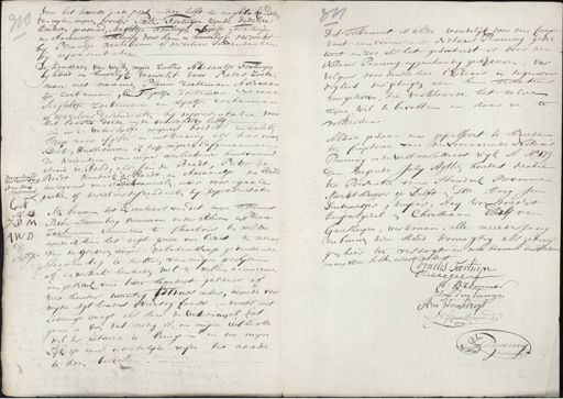 Voor het tweede derde part in deze helft de nagelite kinderen van wylen mynen broeder Pieter Fortuijn zynde dezelve 300 kinderen genoemd, Magkeltje Fortuijn Zijntje Fontuijn en Arraantje Forluijn door hem in huwelyk verwekt by Pliantje Neuteboom of derselver descendenten. by repræsentatie De kinderen van wijlen mijne zuster Adriaantje Fortuijn by hand in huwelijk verwekt door Pieter Zoete¬ man met naamen Pleun zoeteman Adriaan tje zoet eman, Trijntje Zoeteman eenie Magteltje Zoeteman en Lyntje zoeteman of derzelver descendenten by representatie voor het laaste derde in de voorschilve helft. in in de wederhelft mynes boedels en nalaten schap naar afgifte en uitkeering als hier vooren Staat, Institueere ik tot mijne Erfgenaamen de vrienden van mijn overleedene huisvrouw Maria de Raad, als: Jan de Raedt, Pieter de 34 Dit Testament is alzo woordelijk door den Compa rant aan voornoemde Notaris Penning gedic teert en zoo als het gedicteert is door den Notaris Penning eygenhandig geschreeven, voor volgens door denzelve Notaris in tegenwoor¬ digheid der getuigen aan hem Testateur voorgeleezen, die verkleerde het zelve zijne wil te bevatten en daar in te volharden Aldus gedaan en gepasseert te Schieden ten Comptoire van de Noornoemde Notaris Penning in de West molestraat wijk A No 179. den negende July Agttien hondert dertien ter Presentie van Hendrik Bremmen Markt schipper op Delft en Den Haag Jan Duitemeyer, huijser, Ary woensdrecht kuipesgezel en Christiaan Adolf van Griesheym, werkman, alle meerderjarig en binnen deze stad woonagtig als getuy¬ gij hier toe verzogt die deze benevens den Totateur en my Notaris hebben ondert teekent. vryth van dees Raadt Hendrik de Raedt en Ariaantje de Raad huitvrouw van Adlermeulen, ieder voor egaule van der pritien of derselver descendenten by repraesentatie CH Ik benoem tot Executeurs van dit myn Testament H. B. Pieter Leeuwenberg Bouwman onder Rhoon en Pleun 7en M Zoefeman woonende te Charlois ten welke 4 W D eynde ik hun het regt geeve om bezit te neemen van de goederen myne nalatenschap geduurende A.F.J. Jaar en dag te reekenen van myn overbyden af en verzoek henlieden wel te willen aanneemen een geschluik van twee hondert guldens of vier hondert twintig francs ieder, ozynde voor beyde Agt hondert veertig faans en voorts met Lodanige magt als naar de wet en en al dat geene te doen dat nodig is, om mijne uitterste wil ter uitvoer te brengen en om myn Lyk op eene ordentelijke wyze ter aarde te doen bestellen. Cornelis Fortuijn bleuwen H: Brümmers Jan Duyleringe Arie Woensdregt A.rG. Chappe Lenning Notaris Januar