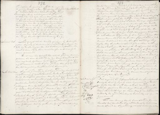 ordre Ten zesden En eyndelyk in Contanten en gereet de gelden Een Somma van Vijfendertig honderd guldens hollands of zevenduizend drie honderd en vijftig francs voortspruitende uit het geene de Comparan te Bruid zoo met wylen haaren man Johan Hen¬ rich Coursen als na zyn overlijden met haar loge¬ ment als anderzints heeft gewonnen en geac¬ quireert en waar van zij den Bruidig om heeft doen blijken en mede zyn overgegeeven aan den Brindegom die zig in het bezit van de zelve gesteld heeft zulks de Acte van de Vollrekking des huwlyks op de Bruidedom zal leggen den last der verantwoording zou der eenige verdere quitantie nodig zal zyn. Met opzigt tot de roerende goederen by Erbenisse Articul Zes giften Legaaten of anderzints de Bruid op te komen ver¬ bind zig de Brindegom van het bestaan en de waarde der¬ zelver te doen blyken door inventarissen in behoorlijke vorm gemaakt. En is men ten opzigte van alle de goederen overeen gekomen die door de Bruid nu zyn aangebragt als die haar nog zoude opkomen by scheyding des huwlyks te rug te neemen in naturd of in goederen van gelyken aard om tot vergelding van dezelve te dienen H3 van dit tegenwoordig humlyk of bij toewijzing eener afscheij¬ ding van goederen aande Jufvrouw Brund of aande haare het indingen en hypotheecquen te bebragen van de gemelde vervreem¬ rug te geven aan haar wegens alle de gevolgen van die Wijpotheecquen te vry waaren zoo als ook boven dien den Heer Brindegom gehouden zal zijn haar Jufvrouw Brond te vrywaaren en schadeloos te stellen zoo wegens Capitaal als intressen nopens alle verbintenissen van welken aard en uit welke oorzaak het ook zyn mooge welke zy geduurende het hun ryk op Authorisatie van den Brundegom zoude mogen hebben aangegaan aangezien de aanstaande Egtgenoten bij deze tegenwoordige Acte overeenkomen dat die verbintenissen niet anders zullen kunnen beschouwd worden dan als eenvoudige borg tagten door de Jufvrouw Bruid gedaan voor rekening van den Bruede gom ten waare de laast gemelde dus danig een stellig en authentiecq hewijs by krenge dat de voorschreeve somma gestrekt hebben ter persoon lijke behoeven Van de Jufvrouw Bruid zynde de bedoeling van Parthyen dat de Jufvrouw Raud wanneer zy ge¬ regtigd zyn zal om haare goederen voor het geheel op te eischen geene vermindering ondergaan wegens ver¬ Kopingen, of opgelegde Hypothecquen uikgenomen de zodanige die op eene behoorlyke wyze beweezen zullen Articul zeven Ingeval geduurende het tegenwoordig huwlyk met worden tot haar voor deel en overeenkomstig de ver¬ toe stemming of op Authorisatie van den Bruide gam eenig soligtingen aan hem opgelegd van de onroerende goederen aan de jufvrouw Brunde toebehorende vervreemd of gezijpothequeerd zouden Mo Articul Agt Dat ingeval de Iufvrouw Brund den Brindegom 1 gen worden zullende, de gelden van die verkoopen of hij Overleesde doet zy hem by deeze tegenwoordige Acte "De Bruyd. potheecquen voortgekomen gevordeeld worden, gestrekt Aprondé tweeeren doorgehaalden gafte van de helft van alle de roerende en on¬ te hebben tot persoonlyk voordeel van den Banide¬ roerende goederen zonder enige voorbehouding die gom ten waare de laastgemelde een stellig en au haare nalatenschap op haar overlyden zullen thentiek bewijs by brengt dat de gemelde geldsomme uitmaken ten eynde daarover te beschikken als zyn W V gebruikt zyn ter persoonlyke behoeven vande Jufvrouw C.r.G: A.W.D. Eijgendom Wijs Bruid en by aldien de Bruide gem. dusdanig bewys mede Tot naarkoming van de vorenstaande overeen¬ komsten zal van deezen dag afterekenen ten behoeve kan bybrengen zal hy gehouden zyn by de ontbending van de Brind een Hypotheceg plaats hebben op alle